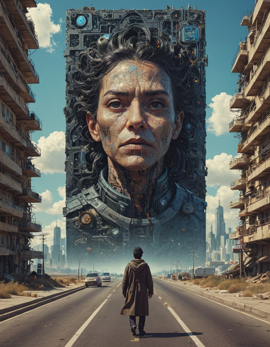 sci-fiction movie monster, tessellated backgrounds, Denis Sarazhin,,Hayao Miyazaki, distressed photo, Royale de Luxe, stick figures, Lim Heng Swee Peter Kuper dark naturalism, Norma Kamali, neo dadaismpostcards, personal injury lawyer billboard advertisement, encaustic painting, MC Escher, Arcology Sci-Fi parody movie still portraiture photography, indigenous futurism psychedelic , outer space, vanishing point, super highway, high speed, digital render, digital painting, beeple, noah bradley, cyril roland, ross tran, trending on artstation
