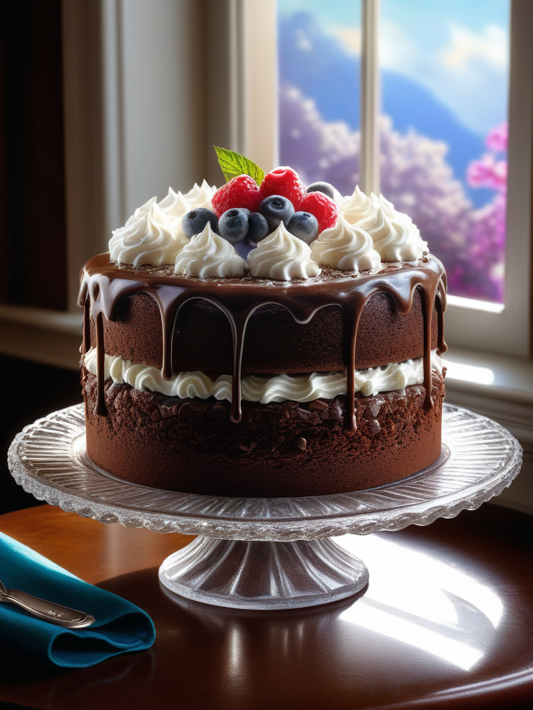 <lora:SS02ImpressionisticPainting_Hap_XL:1>, Thomas Kinkade style, Create a stunning and captivating sketch color photorealistic scene of a chocolate cake with coconut and cream, intricate details , Broken Glass effect, no background, stunning, something that even doesn't exist, mythical being, energy, molecular, textures, iridescent and luminescent scales, breathtaking beauty, pure perfection, divine presence, unforgettable, impressive, breathtaking beauty, Volumetric light, auras, rays, vivid colors reflects,