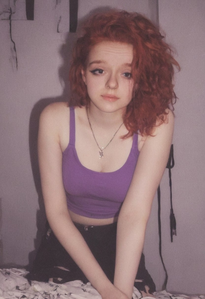 woman, egirl_pfp, polaroid <lora:egirl_pfp:1>, Molly, MJ, auburn hair, violet tank top, cleavage, polaroid photo