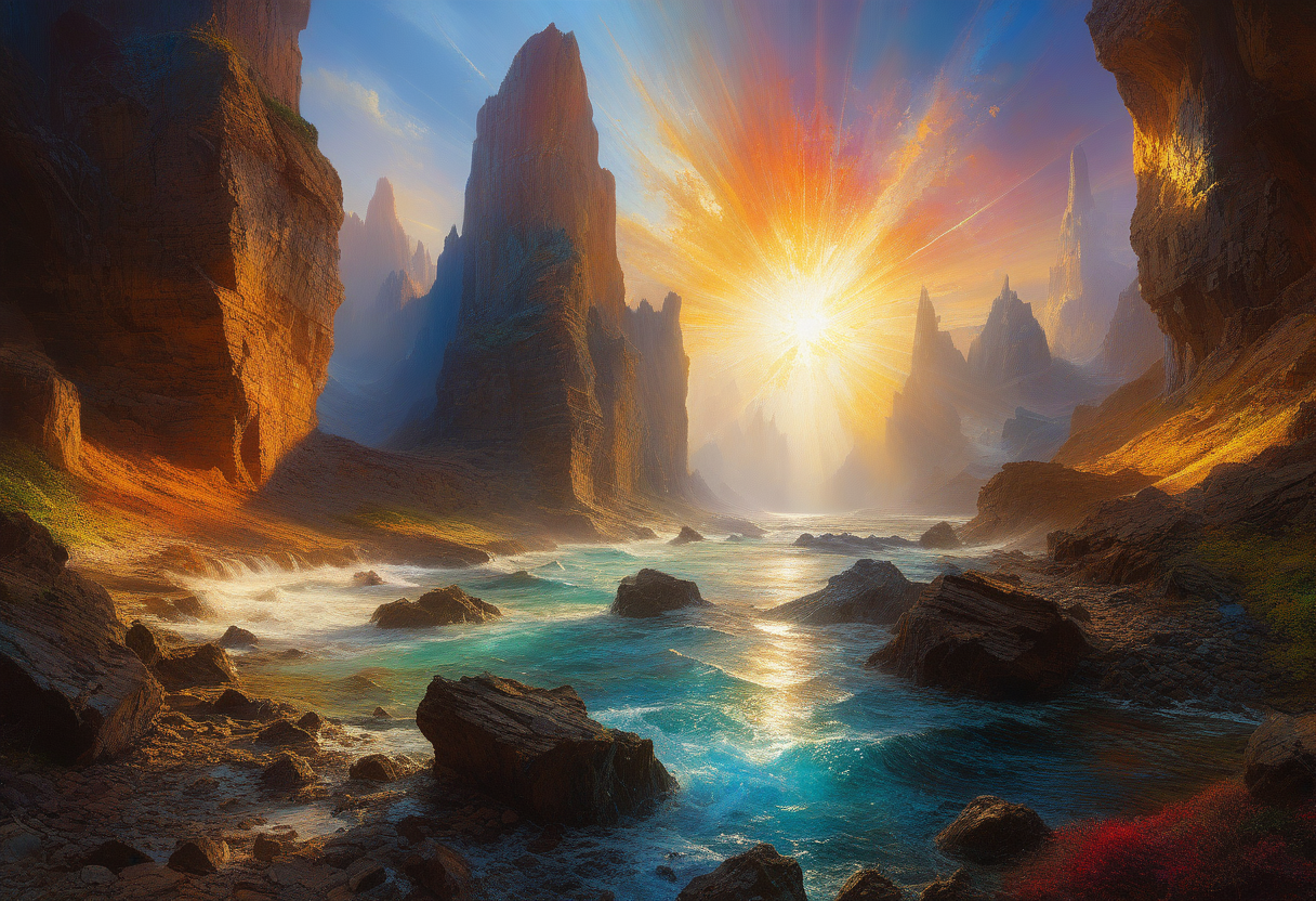 <lora:10NaturalismPainting_Hap_XL:1.5>, Thomas Moran style, oil painting, nature, Visualize the perplexing world of quantum mechanics through abstract art, featuring impossible shapes and bewildering dimensions., ultra hd, realistic, vivid colors, highly detailed, UHD drawing, pen and ink, perfect composition, beautiful detailed intricate insanely detailed octane render trending on artstation, 8k artistic photography, photorealistic concept art, soft natural volumetric cinematic perfect light,