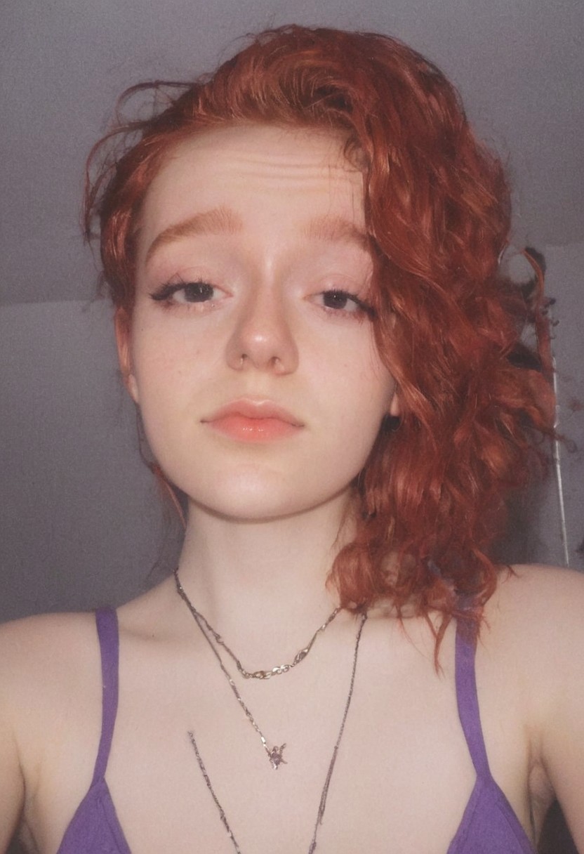 woman, egirl_pfp, polaroid <lora:egirl_pfp:1>, Molly, MJ, auburn hair, violet tank top, cleavage, polaroid photo