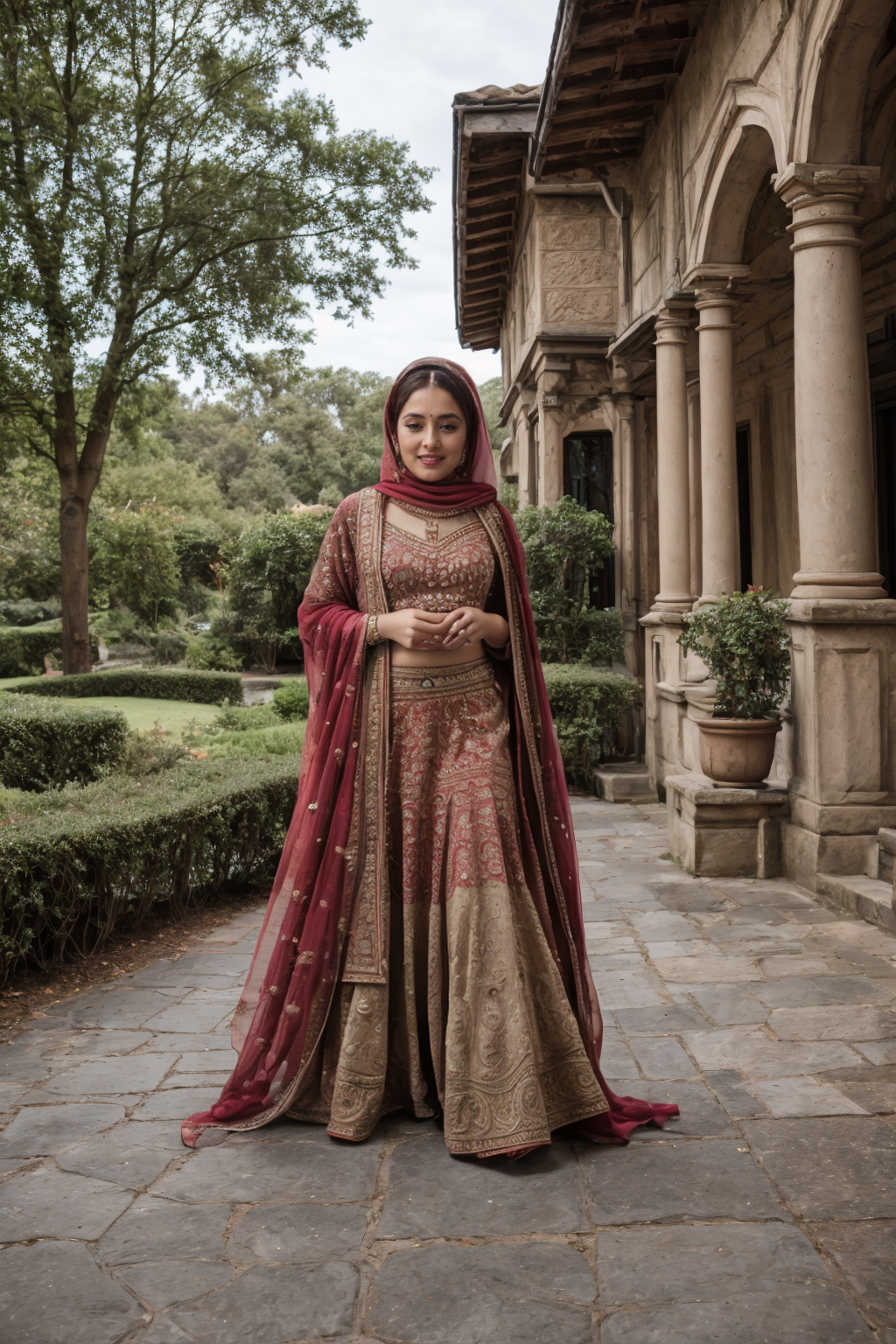 wide angle cinematic captivating photo, front side view, beautiful pakistani hijabi bride woman walking along paved pathway towards (villa:1.3), <lora:villa:0.5>, country manor, house, windows, roof, grand doorway entrance, granite pillers, england, london, luxury, exquisite, posh, detailed ornate embroidered bright red clothes, gold jewellery, smile, teeth, <lora:Bridal_Lehnga_By_Stable_Yogi:0.7> 00red00bridal00legnga, 1girl, solo, lifting skirt,<lora:sps2:0.6> supershorty, masterpiece, best quality, absurdres, highres, 4k, intricate details, highly detailed, <lora:add_detail:0.4>, wedding reception, beautiful composition, <lora:right side position:1> rside, right side,, RAW photo, 8k uhd, dslr, soft lighting, high quality, film grain, Fujifilm XT3