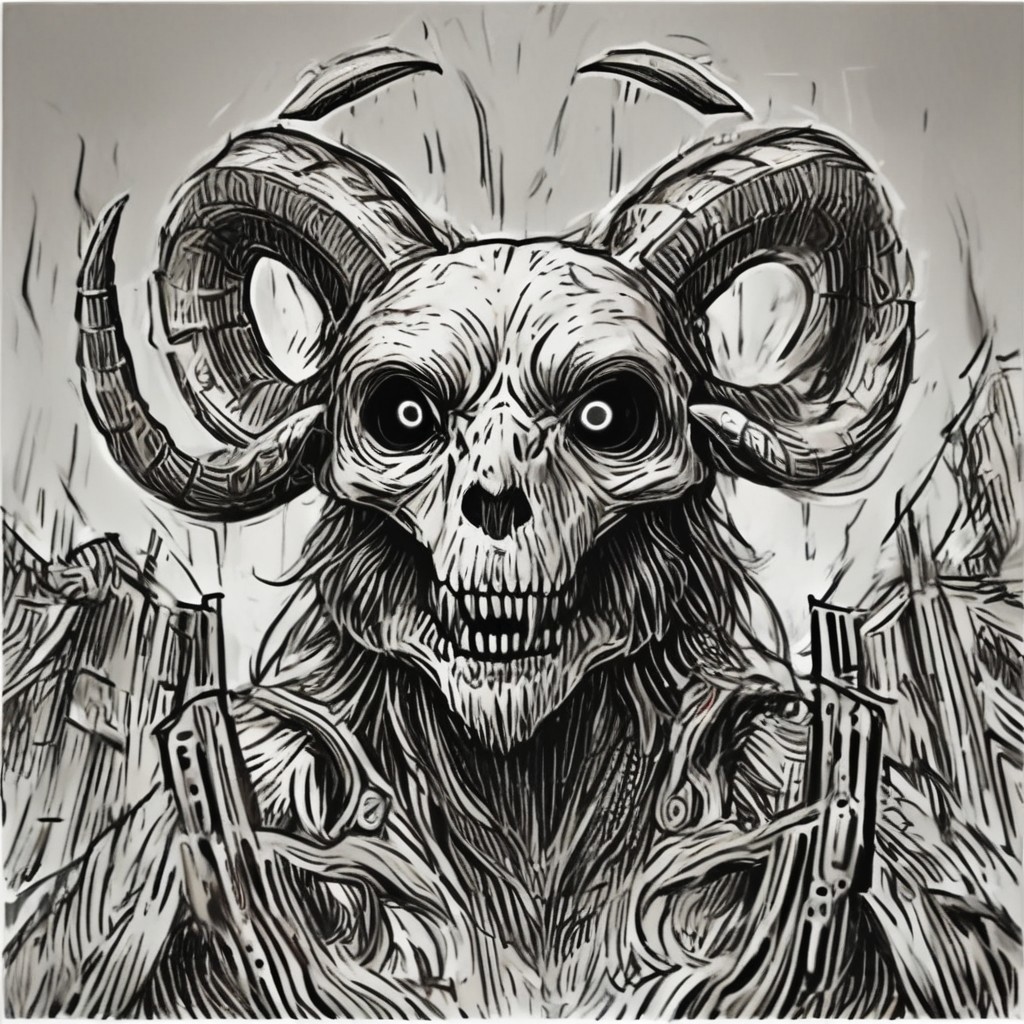 DonMS1mpl3Dr4w1ngXL, score_9, score_8_up, score_7_up, score_6_up, simple lineart, goat skull, Terrifying demon, symbol of fear and evil, associated with dark magic and legends, ominous and malevolent presence, mild,integrative,assembly line,underground,augmented,inviting,programmed , rating_safe <lora:DonMS1mpl3Dr4w1ngXL-pony_v1.1:1>