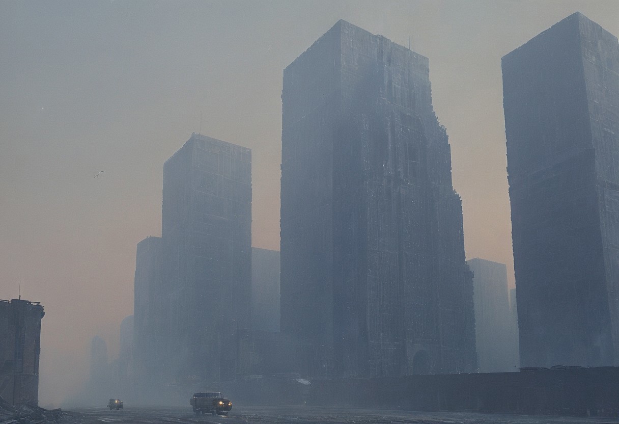 cinematic concept-art, ultra-detailed, designed by Luis Barragan, scifi, 'Zima Blue', horizontal skyscrapers, megastructure, death riding on a pale horse, the shimmer, neo-visigoths, starculture, fictional planet, breathtaking scope and scale, centuries into the future, channelling the spirit of Gustav Eiffel, aerial view, polished, linear light, hideaki anno corpo world,