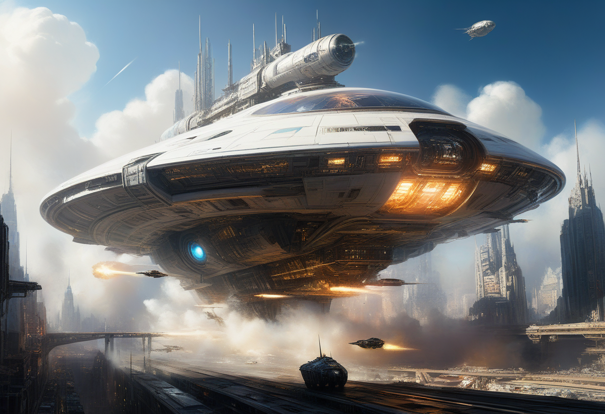 <lora:10NaturalismPainting_Hap_XL:1.5>, Thomas Moran style, oil painting, nature, Futuristic round and white concept spaceship, daylight, Above far bio punk city,, sharp focus, emitting diodes, smoke, artillery, sparks, racks, system unit, motherboard, by pascal blanche rutkowski repin artstation hyperrealism painting concept art of detailed character design matte painting, 4 k resolution blade runner