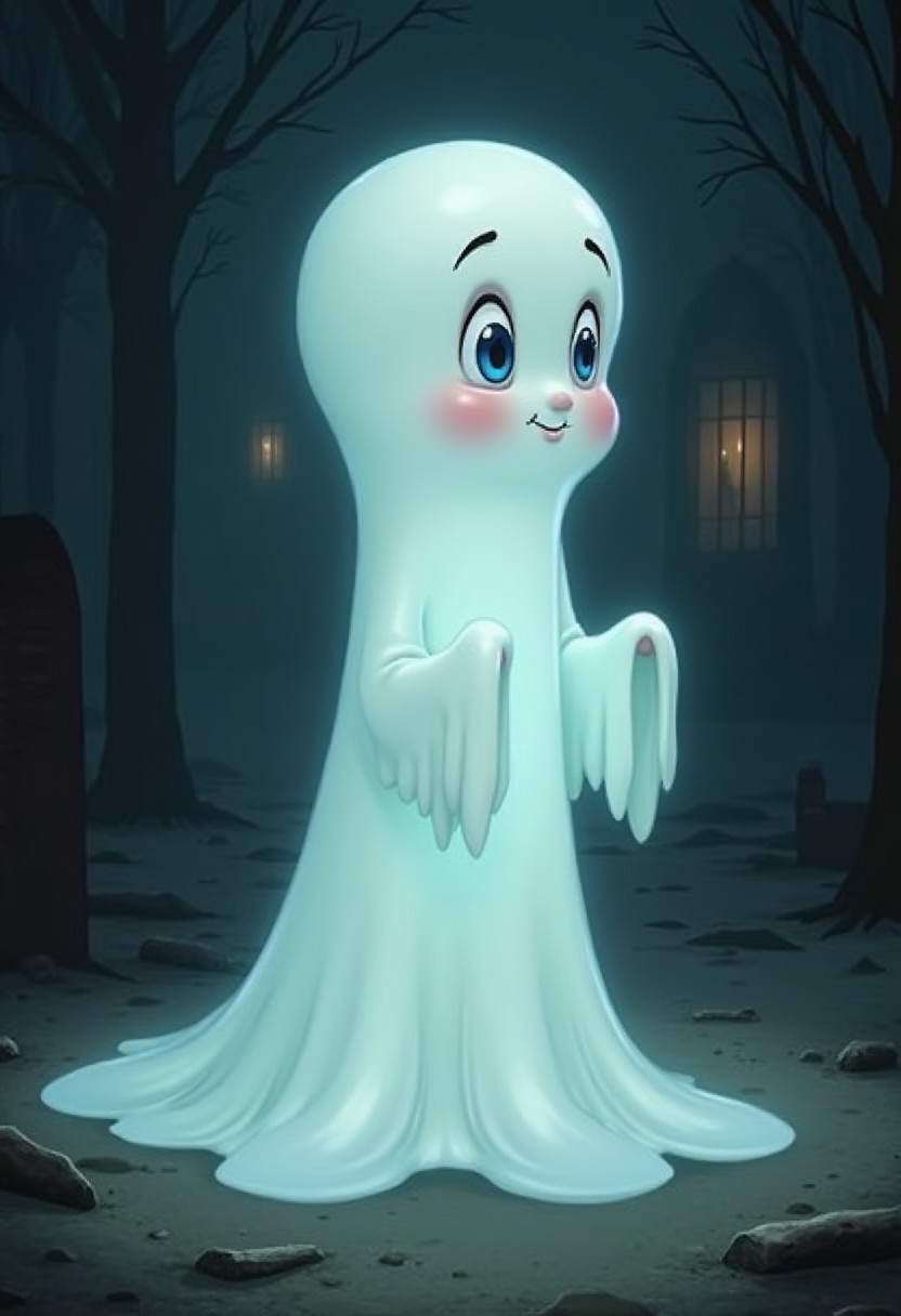Create a character similar to Casper from the 1995 movie "Casper." This character should be a friendly and gentle ghost with a deep desire to make friends and connect with the living. Despite their ethereal nature, they possess a kind heart and a longing for companionship. They live in an old, possibly haunted place, but rather than being scary, they are endearing and misunderstood. Describe the character's appearance, personality, backstory, and how they interact with both the living and other supernatural beings. How do they cope with their ghostly existence? What challenges do they face in trying to form friendships with the living? What makes them special and different from other ghosts?