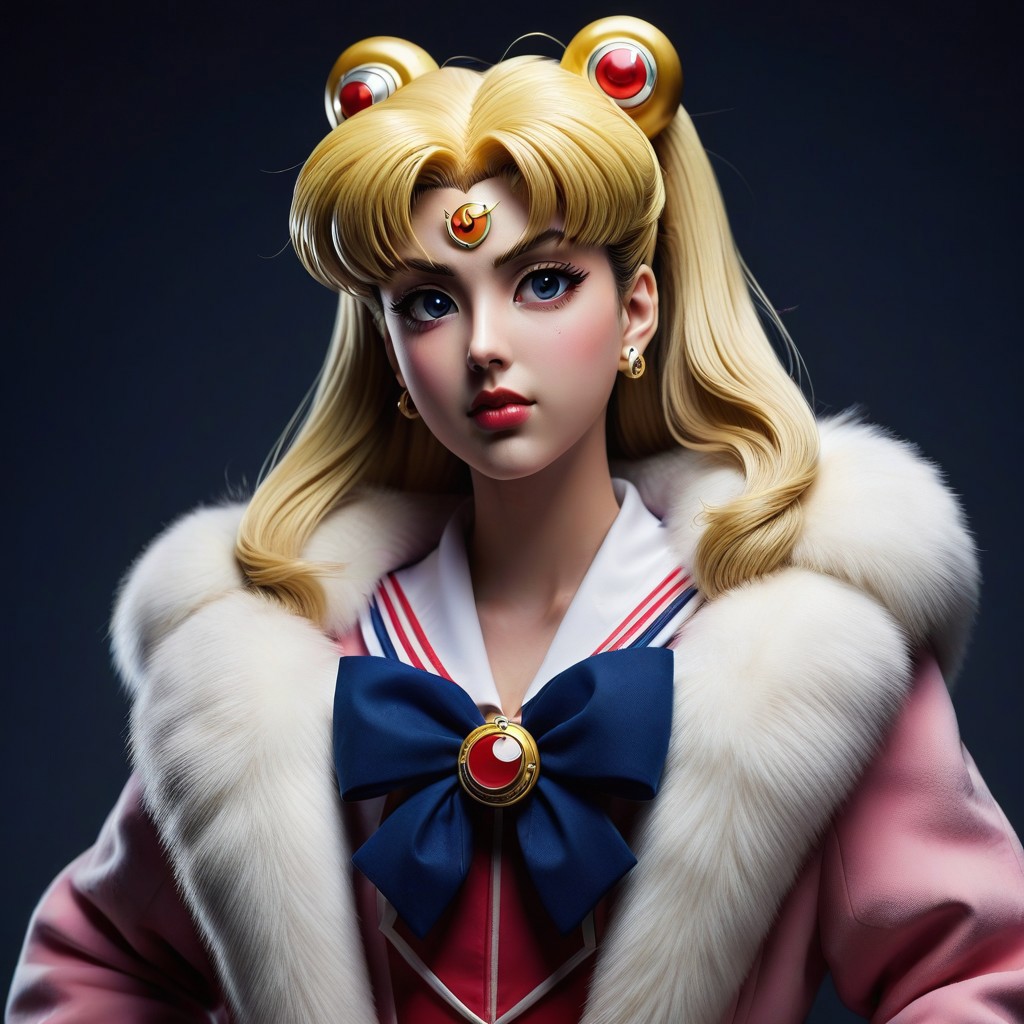 Sailor Moon , furcoat, evang, detailed face, detailed hair