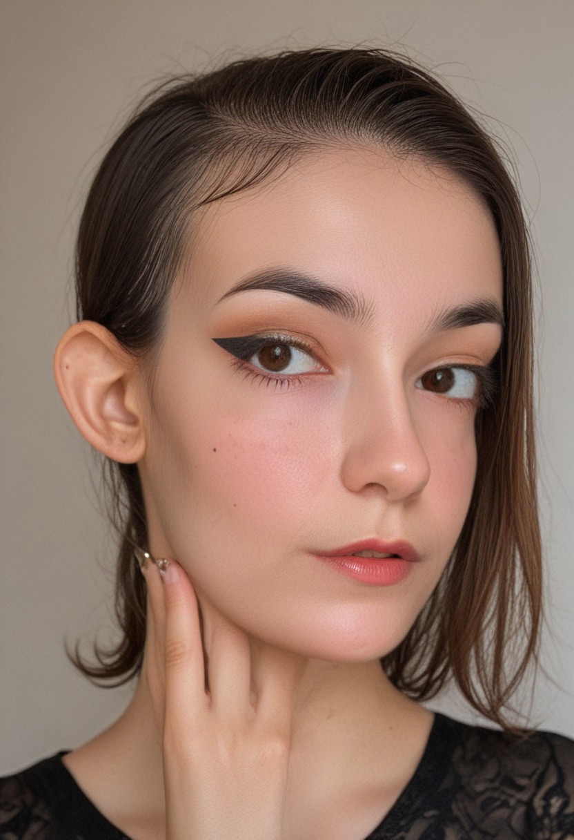 analog film photo of, perfection style, detailed style, skin texture style A (closeup portrait:1.6)cinematic professional photography of a ((Beautiful Young 25 yr old seductive woman, brunette hair)), (((top of head shaved bald), (long hair on the rest of head))), (((Wahl hair clippers in her right hand held to top of head))), (((clump of long brown hair held in her left hand showing to viewer))), dark hazel eyes, (black sheer cocktail dress), depth of field, realistic, photo background, photorealistic, parted lips, clear film, saturated, 35mm photo, fine grained, vignette, vintage, Kodachrome, medium format, large format photography, highly detailed, golden ratio face,