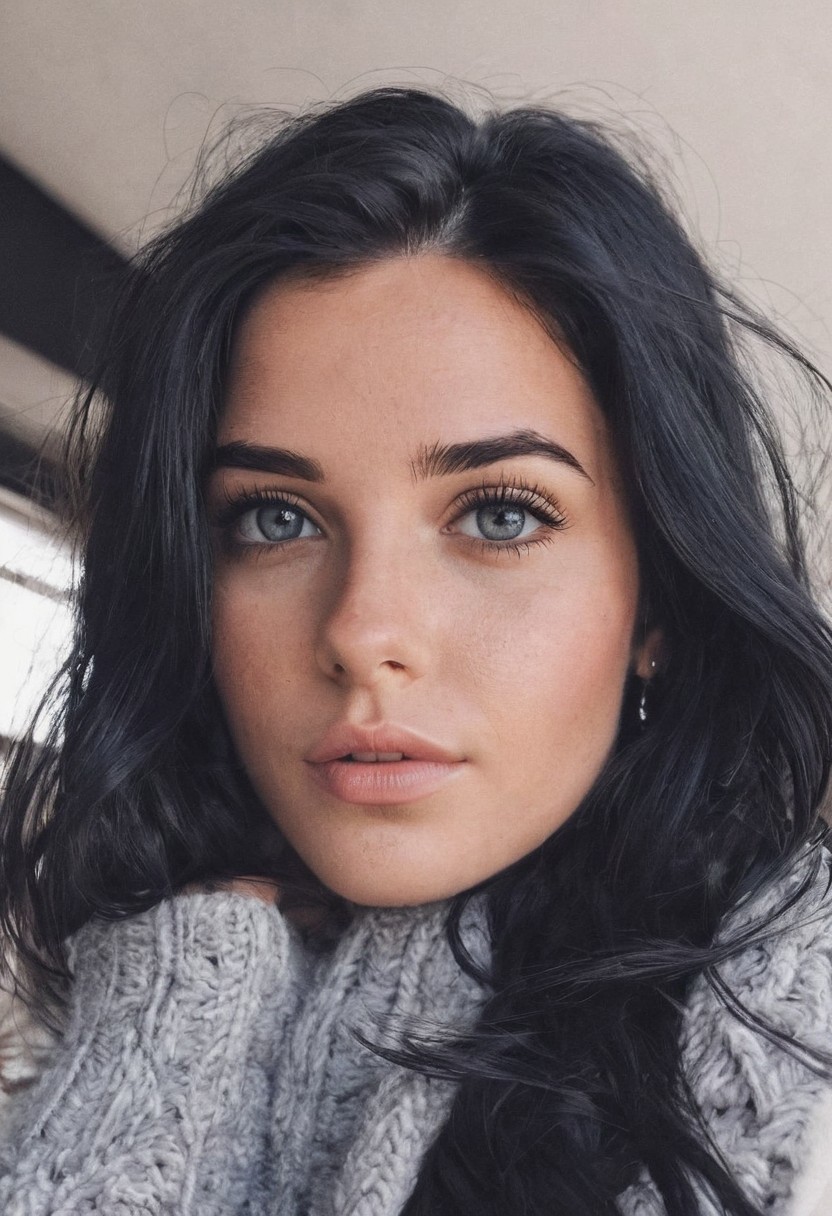 instagram photo, full face, European girl, Nordic, black hair, perfect detailed eyes, natural skin
