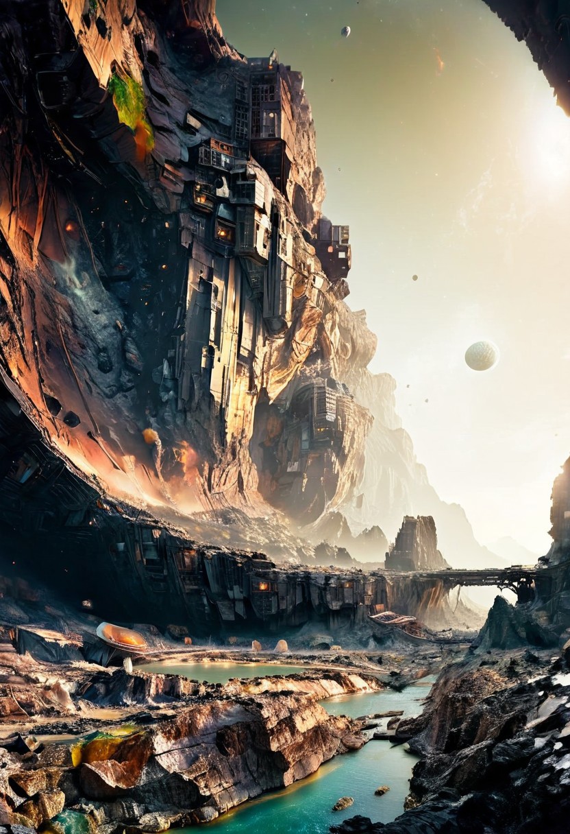 space fortress orbiting an asteroid belt