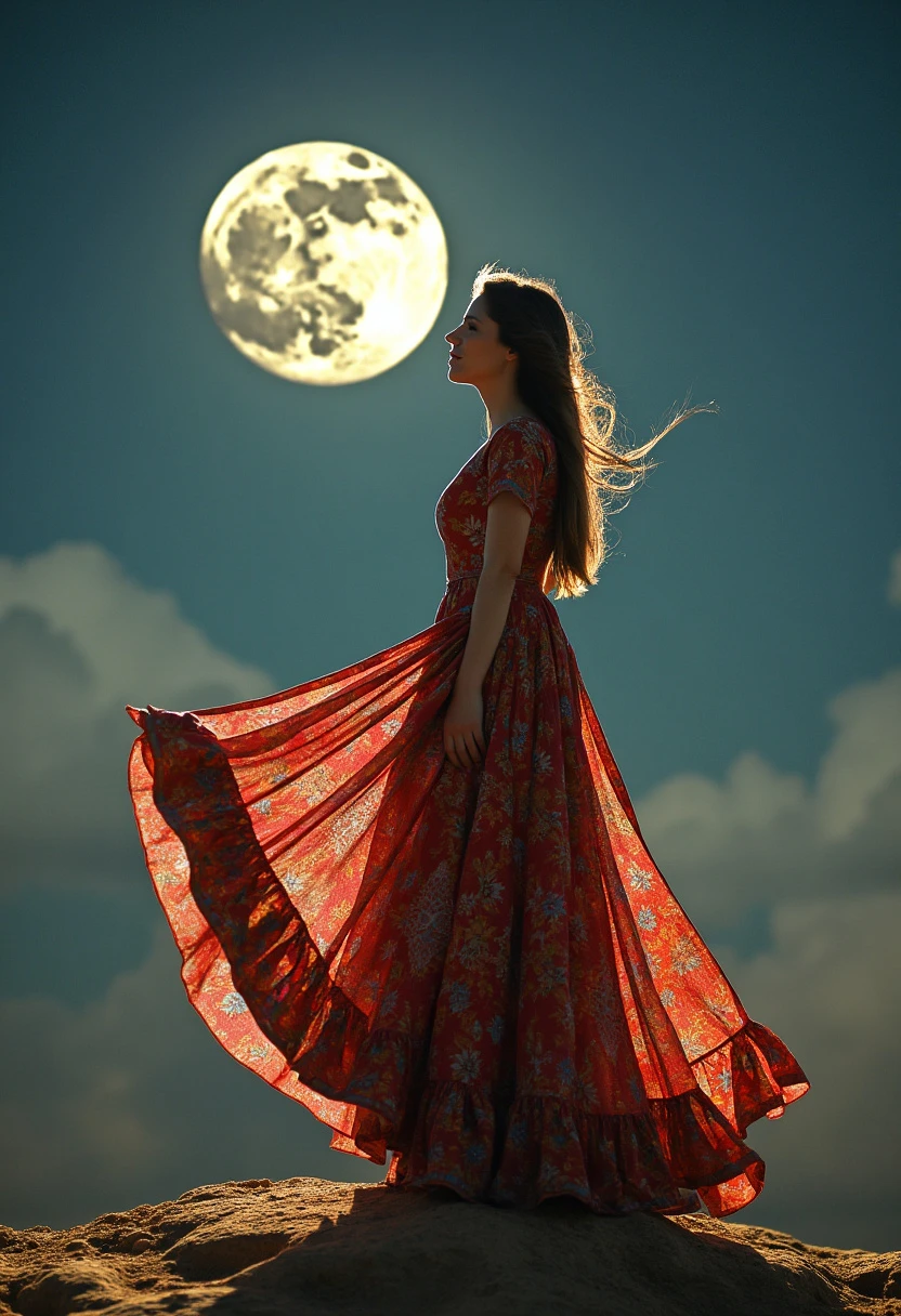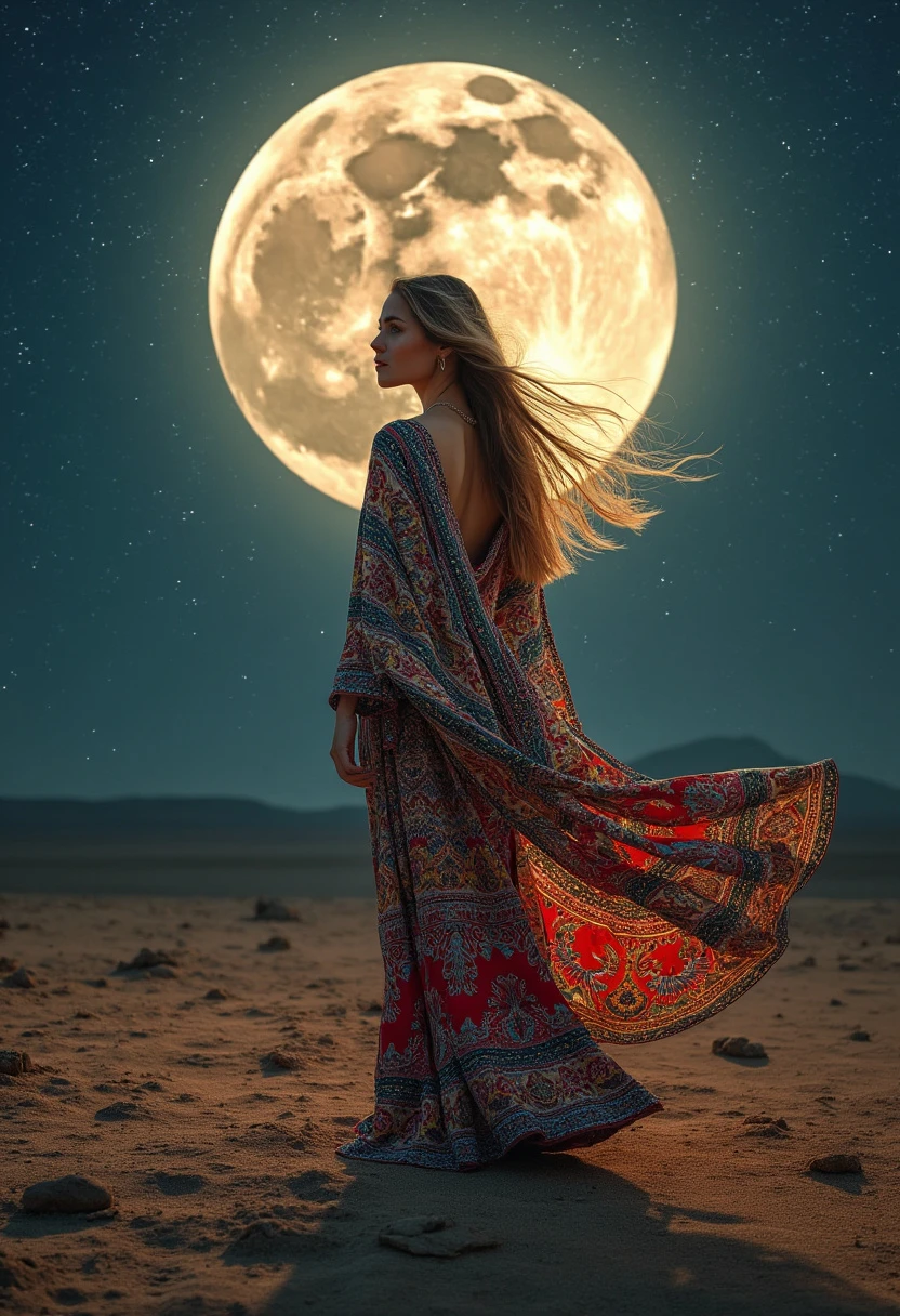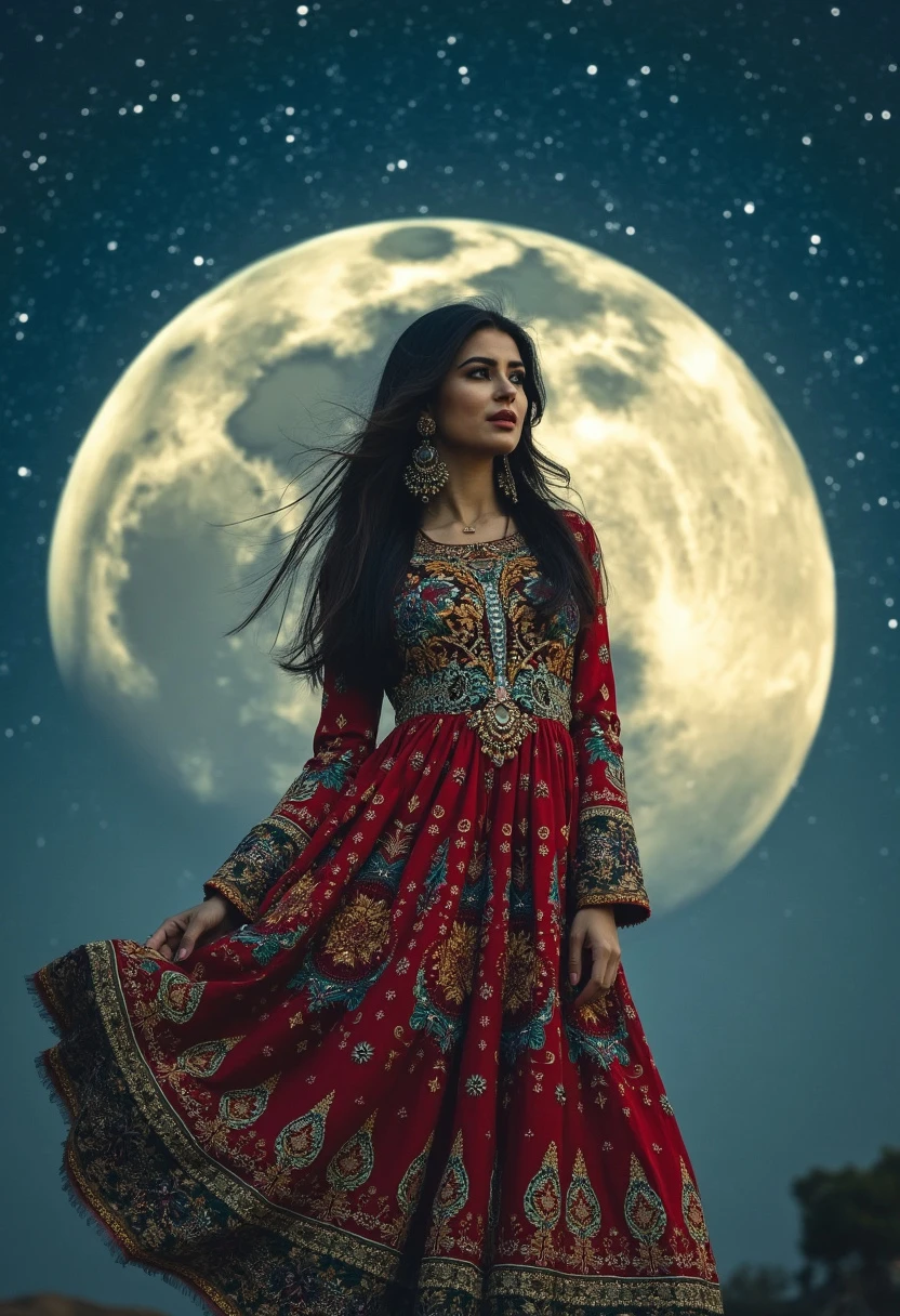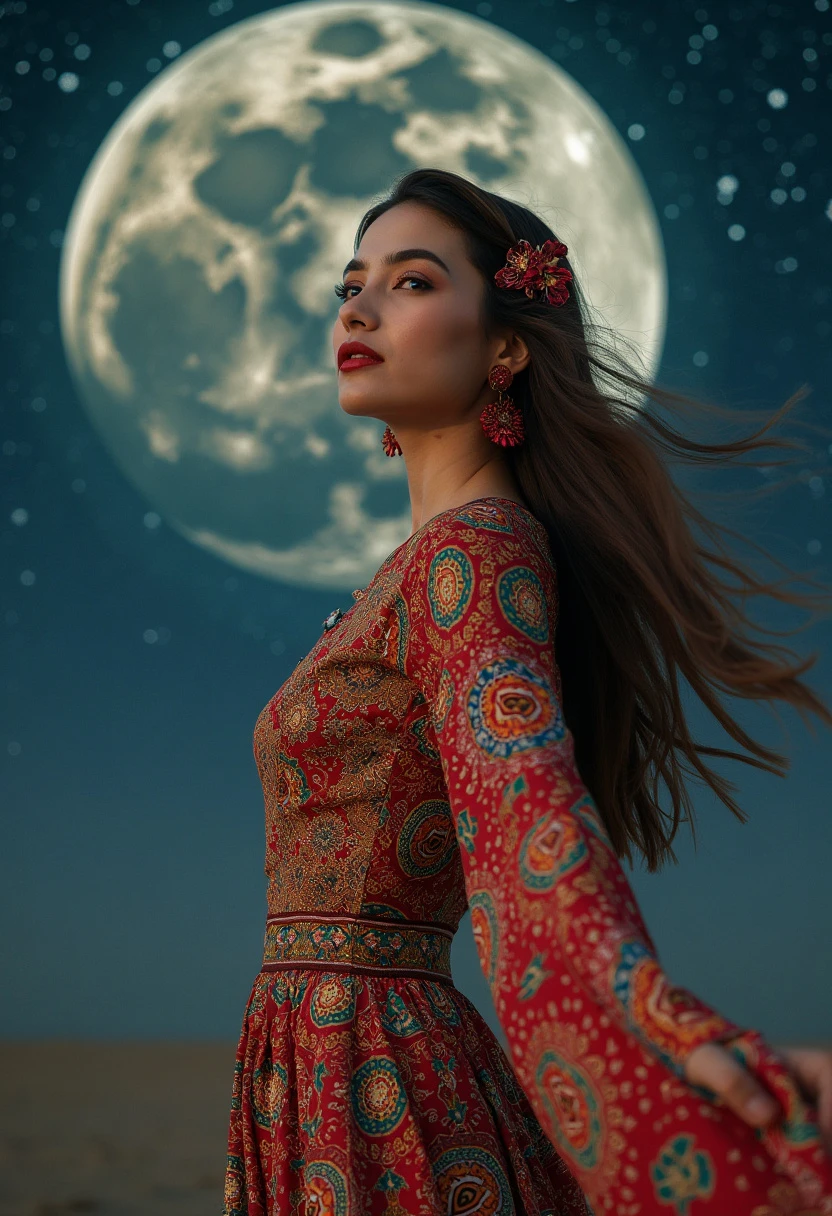 persian woman in persian colorfull dress in the moon