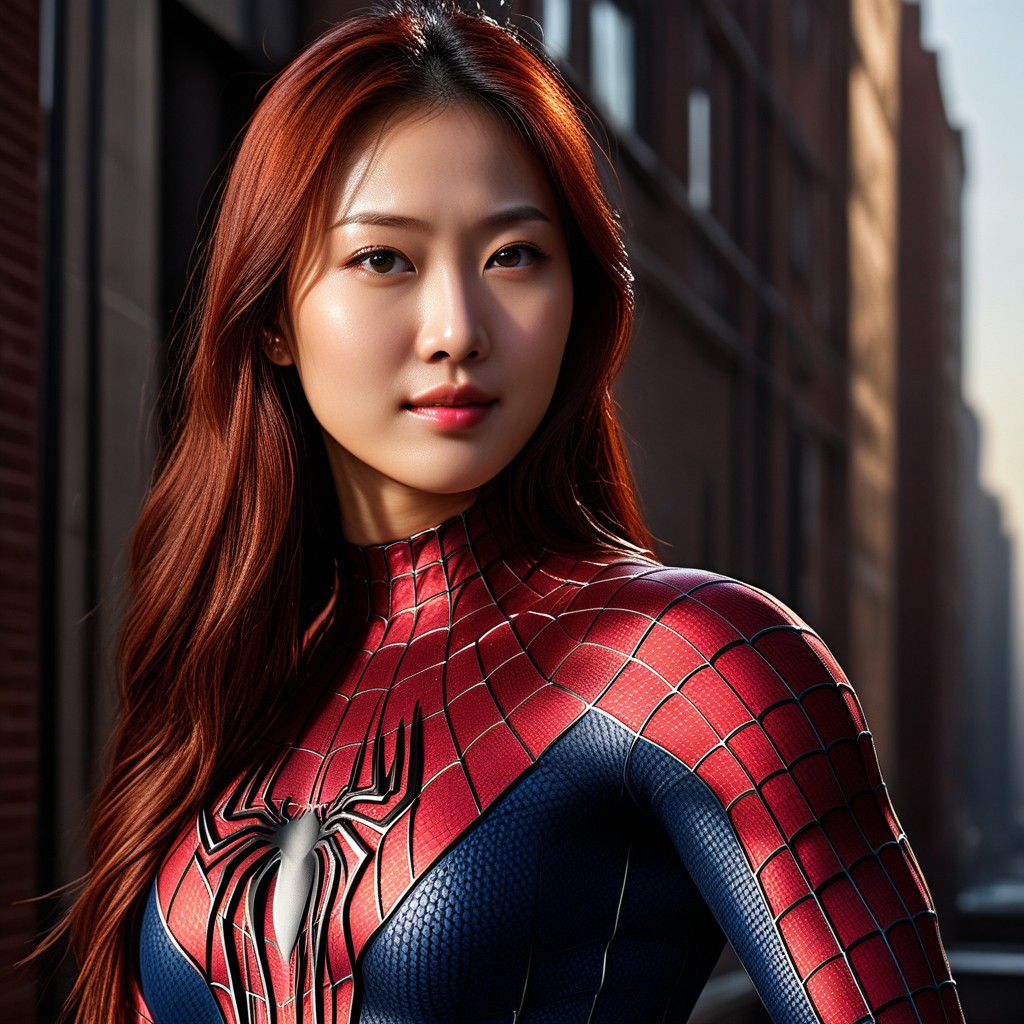 score_9, score_8_up, score_7_up, best quality, realistic, masterpiece, beautiful detail, hyperrealistic, ((1girl, woman body, big breasts)), amazing detailed full body of a beautiful korean mary jane, wearing a realistic and highly detailed black raimi spider-man suit, ((huge muscular girl)), amazing detailed full body portrait of a sexy korean girl, wearing a realistic and highly detailed raimi spider-man suit, ((huge muscular girl)), professional model wears ultra - detailed raimi spider - man suit, ultra - detailed and grained raimi spiderman suit, suit covered entire body and hand, black spiderman gloves, wet,, wet, (close up selfie pose, smile), close up, octane render, highly detailed, volumetric, dramatic lighting, (highest quality:1.1), (HDR:1.3), (top quality, best quality), realistic, high definition, sharp contrast between light and shadow, athletic and fit physique, highly detailed and accurate portrayal, photorealistic rendering, tense and alert atmosphere cinematic scene, cinematic lighting, intricate detail skin and facial texture, lifelike expression, accurate character design, dynamic pose, interesting and complex background details,