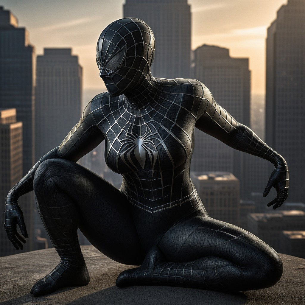 score_9, score_8_up, score_7_up, best quality, realistic, masterpiece, beautiful detail, hyperrealistic, afternoon sky, ((1girl, woman body, big breasts)), amazing detailed full body portrait of a beautiful girl, wearing a realistic and highly detailed black raimi spider-man suit , wears black spiderman mask, ((huge muscular girl)), ((sitting, spread legs)), suit covered entire body and hand, black spiderman gloves, (full body), (dirty skin), close up, octane render, highly detailed, volumetric, dramatic lighting, (highest quality:1.1), (HDR:1.3), (top quality, best quality), realistic, high definition, sharp contrast between light and shadow, athletic and fit physique, highly detailed and accurate portrayal, photorealistic rendering, tense and alert atmosphere cinematic scene, cinematic lighting, intricate detail skin and facial texture, lifelike expression, accurate character design, dynamic pose, interesting and complex background details,