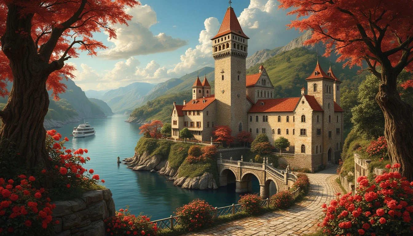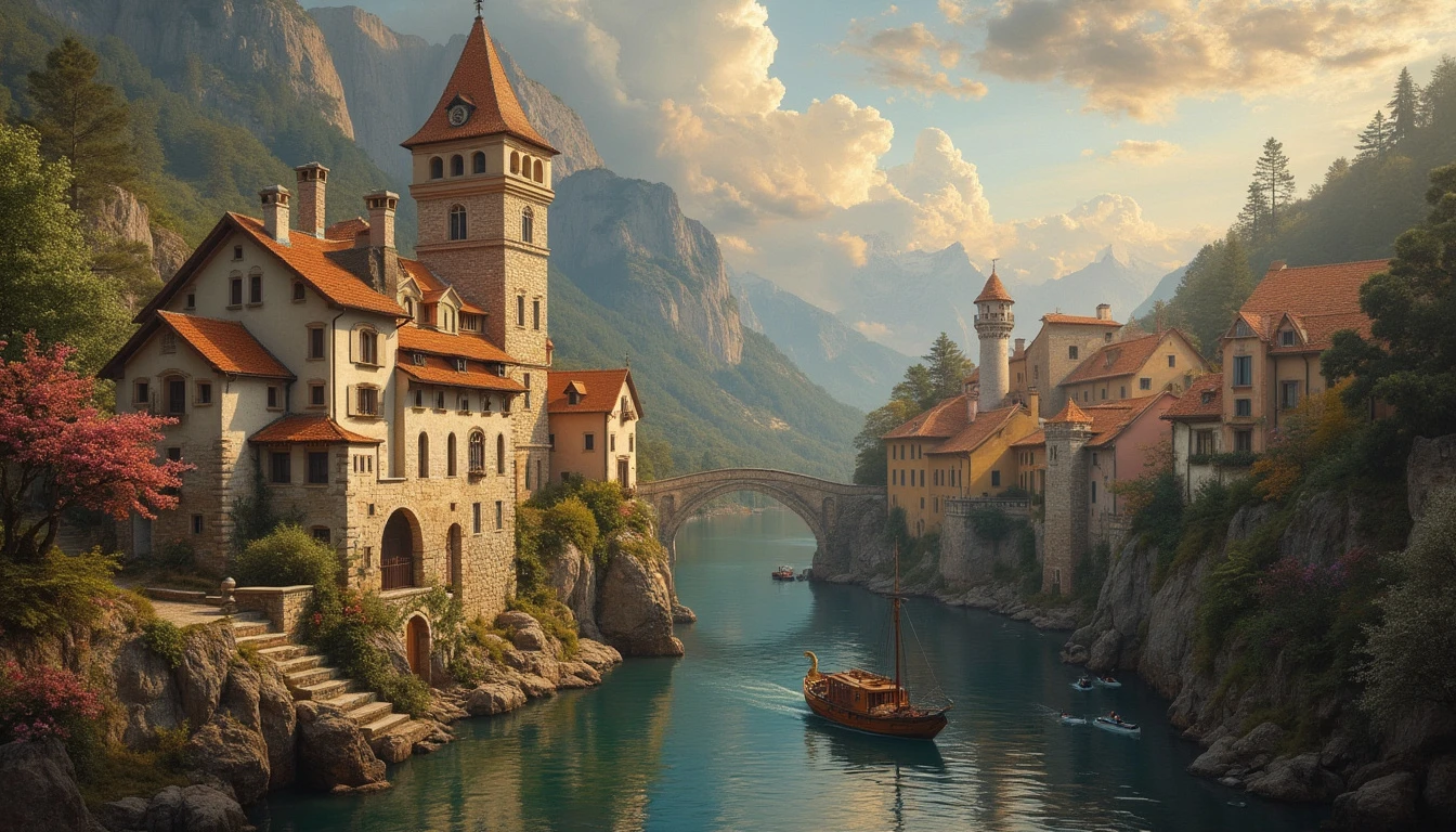 impeccably, captivating, masterpiece, Dream, the most beautiful day in live, tower, village, ship Cabin, romantic, bouquet, channel, hotel, middle ages, Vatican, hyperrealism