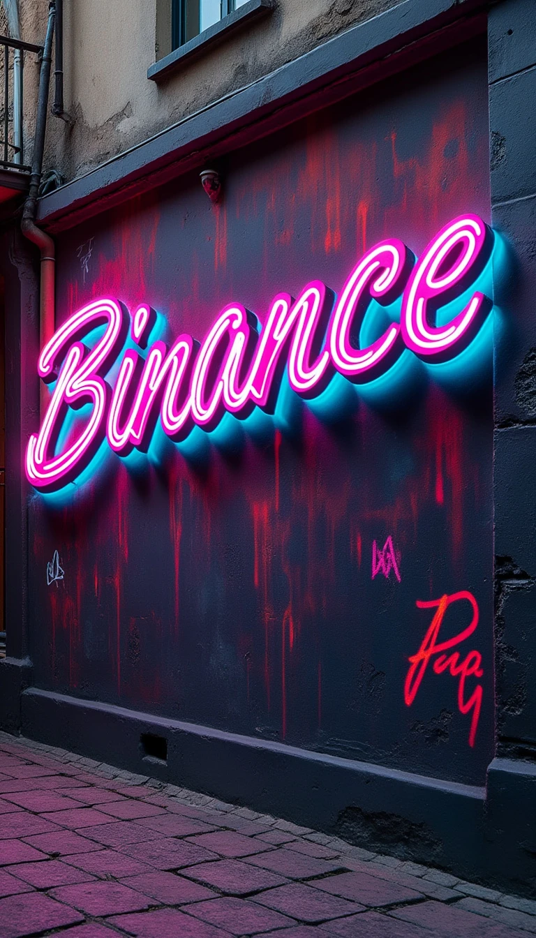 Uma hipnotizante representação em 3D de graffiti neon que mostra o ousado nome "Binance " em cores vibrantes e atraentes. Cada letra parece pingar e espirrar, criando um efeito energético e dinâmico. Os contrastantes tons neon do graffiti destacam-se contra um fundo escuro inspirado na fantasia, combinando perfeitamente com a parede vazia. A obra de arte funde com maestria elementos modernos com uma atmosfera encantadora, mostrando simplicidade, modernidade e uma sensação de admiração. O estilo baseado em vetores e a forte gravidade contribuem para o charme distintivo da obra de arte, refletindo a essência do graffiti e da tipografia. O ambiente de fantasia sombria adiciona um ar de mistério e fascínio, tornando-o perfeito para retratos vibrantes, ilustrações cativantes e visuais impressionantes. O design estético e icônico da moda deste gra, fantasia sombria, pôster, grafite, vibrante, renderização 3D, moda, tipografia, fotografia de retrato, ilustração