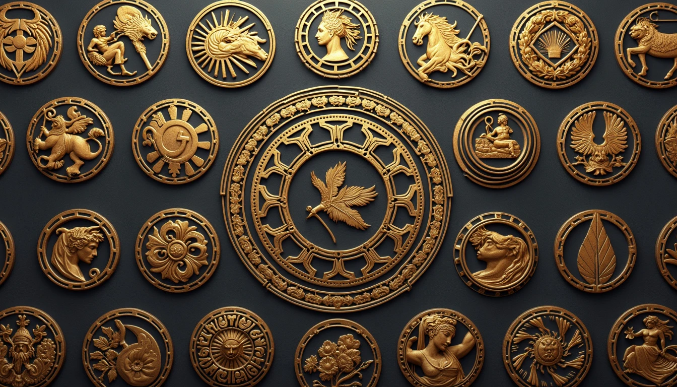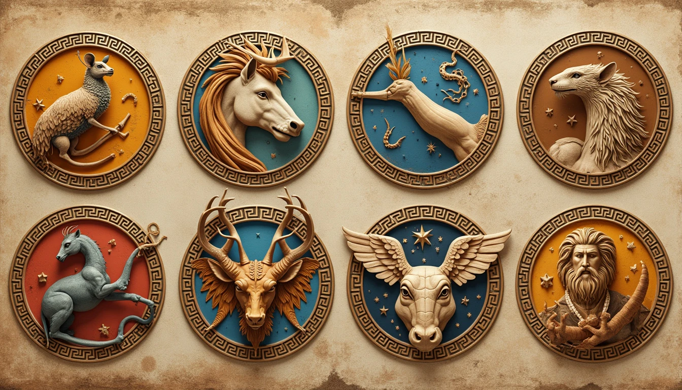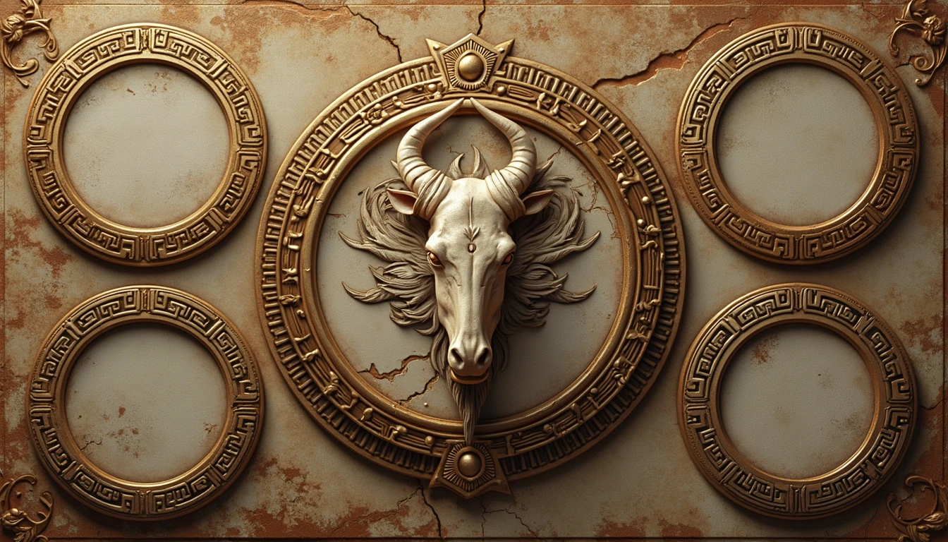 24 circular places for placing logos, design about mythology, high details, high resolution, greek mythology
