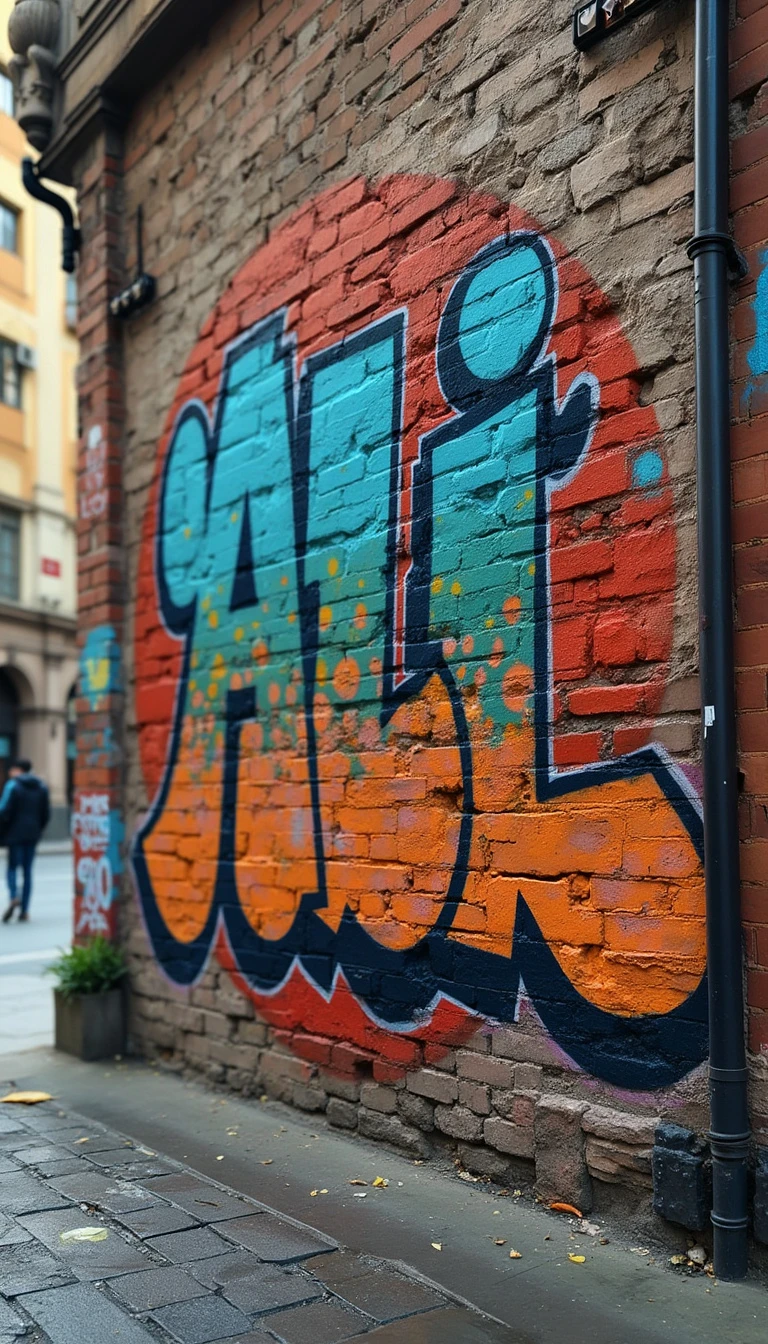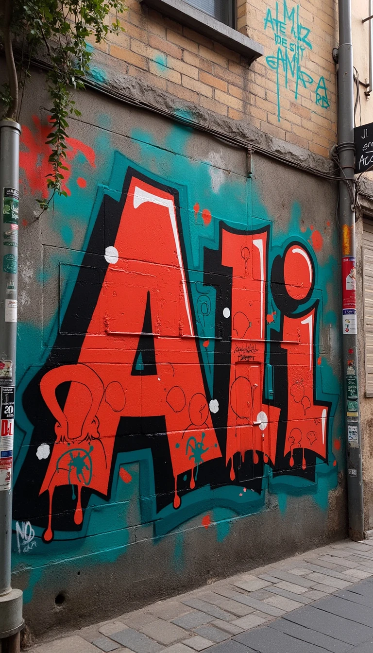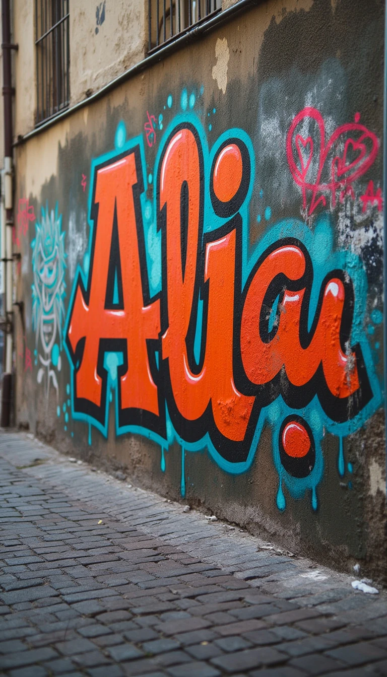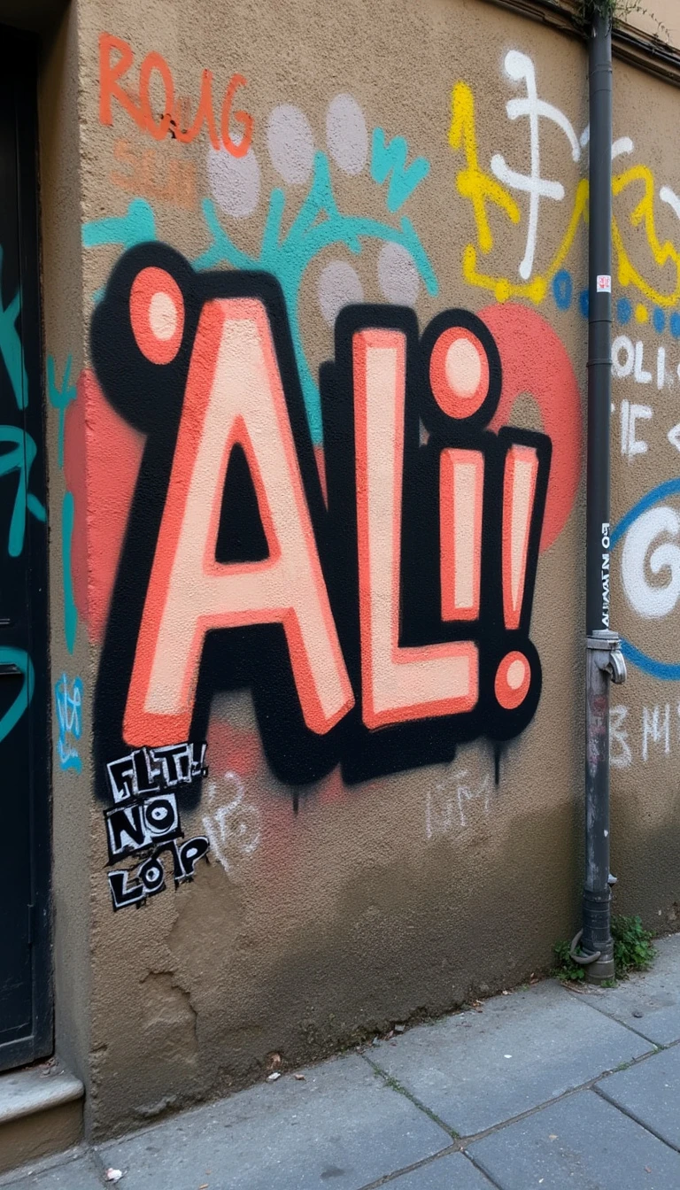styleStylized graffiti on a detailed wall of a Flux No LoRa city street with the text ” Ali”