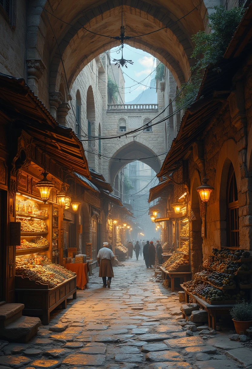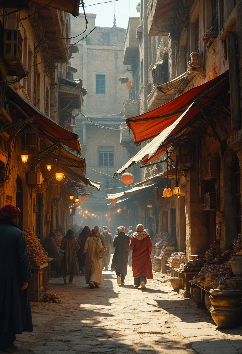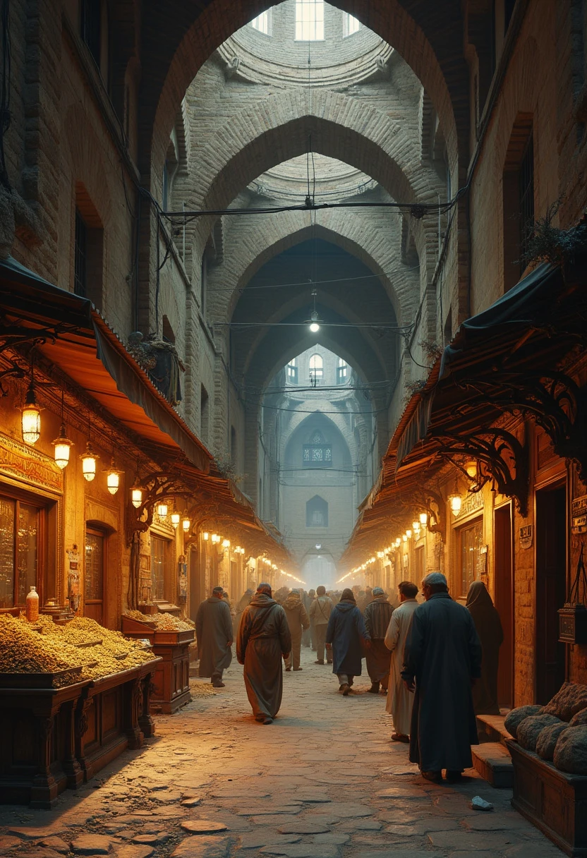 kashan bazar , old bazar , oil painting , fresnel lighting, dramatic composition, hyper detailed, archaeological thriller, full angle shot, extremely high detail, high definition
