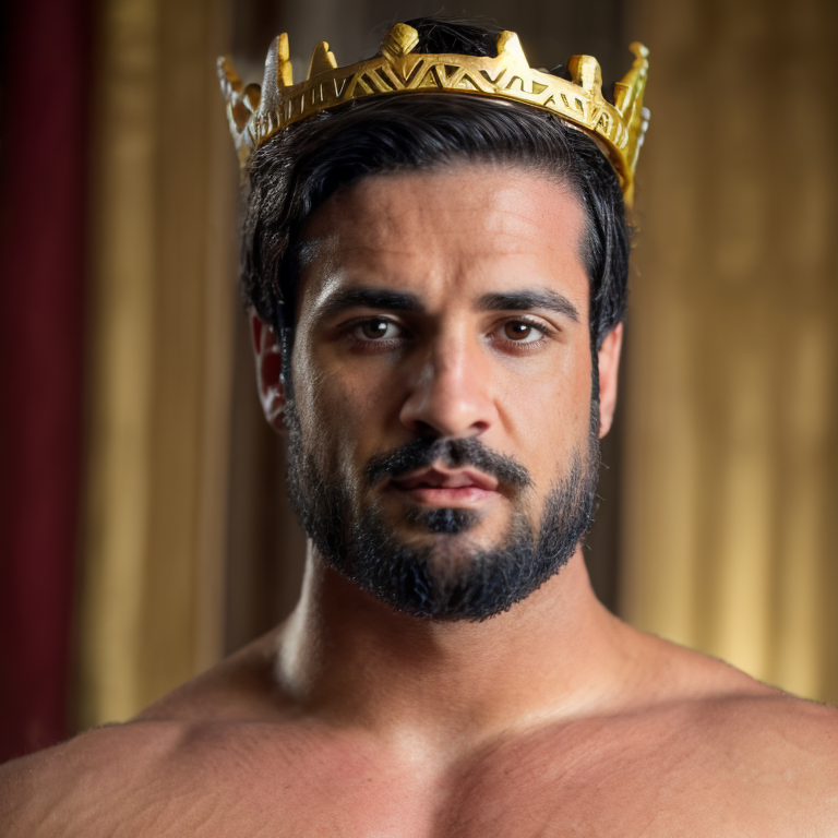 logan franklin, man, male focus, beard, black hair, topless, pectorals, (wearing a golden laurel crown), greek clothes, detailed, realistic, 8k, <lora:Logan_Franklin:1>