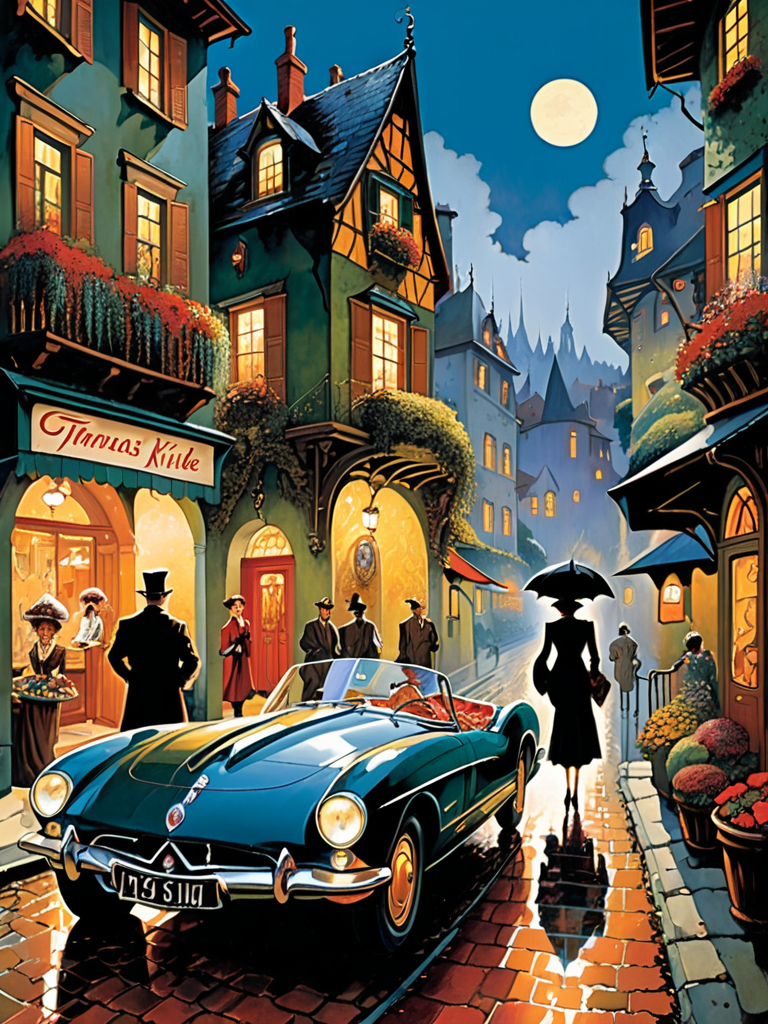 <lora:SS02ImpressionisticPainting_Hap_XL:1.8>,Thomas Kinkade style, Style by Ralph Steadman and Tomer Hanuka and remedios Varo and Helmut Newton and Gustave Klimt and Julie Bell