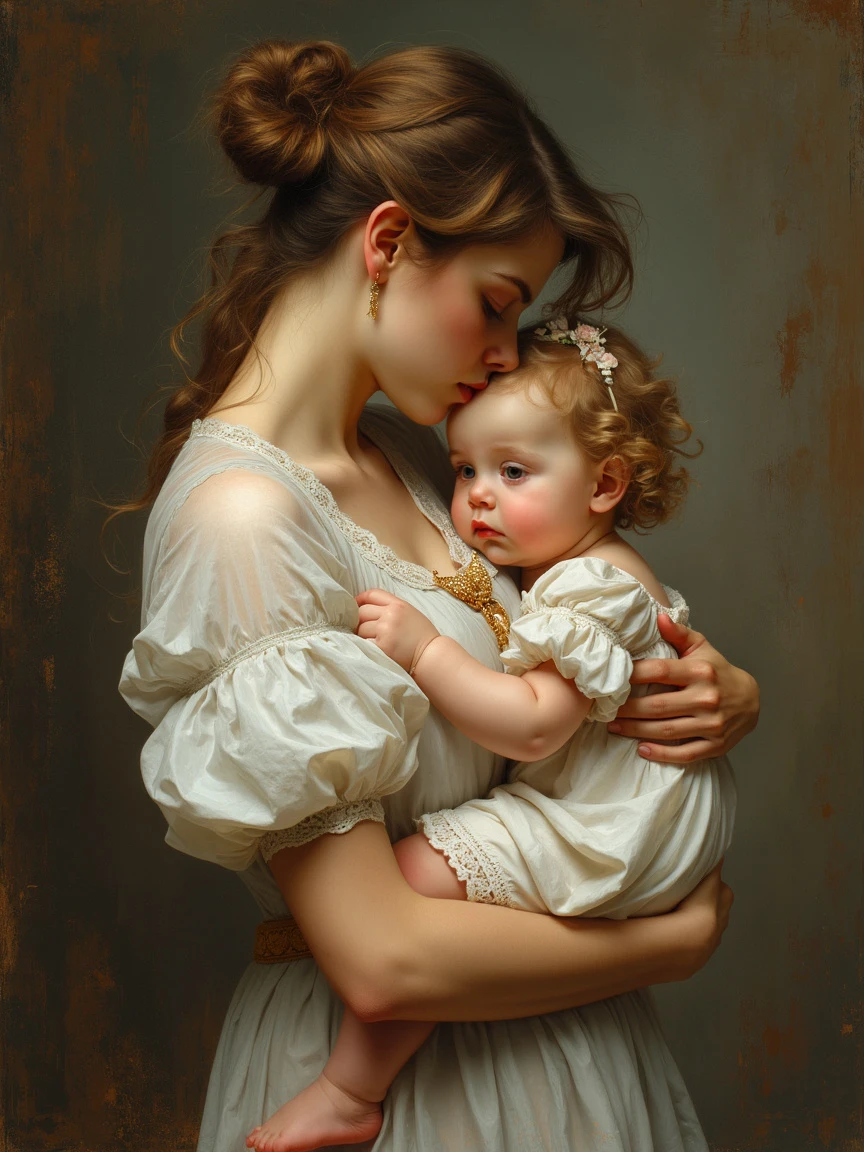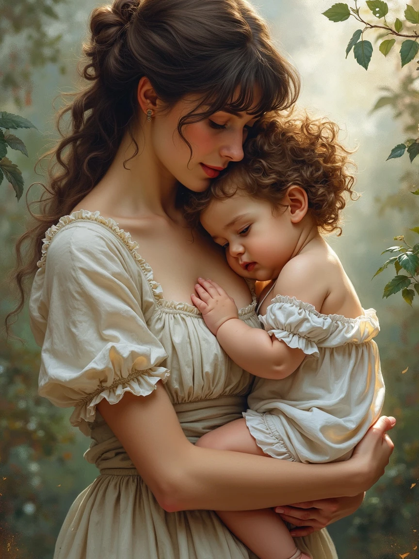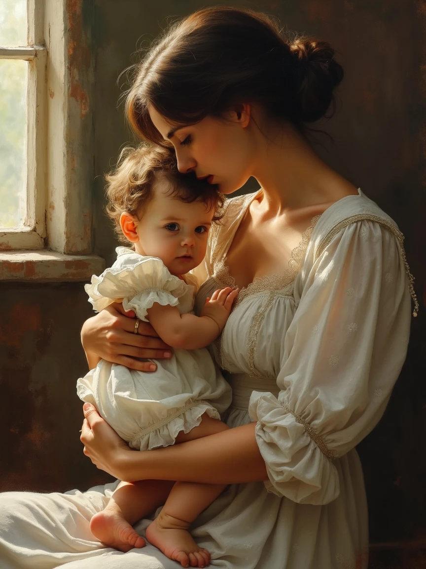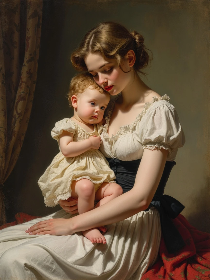 A work by Thomas Benjamin Kennington in the style of the artist , mother and child in her arms