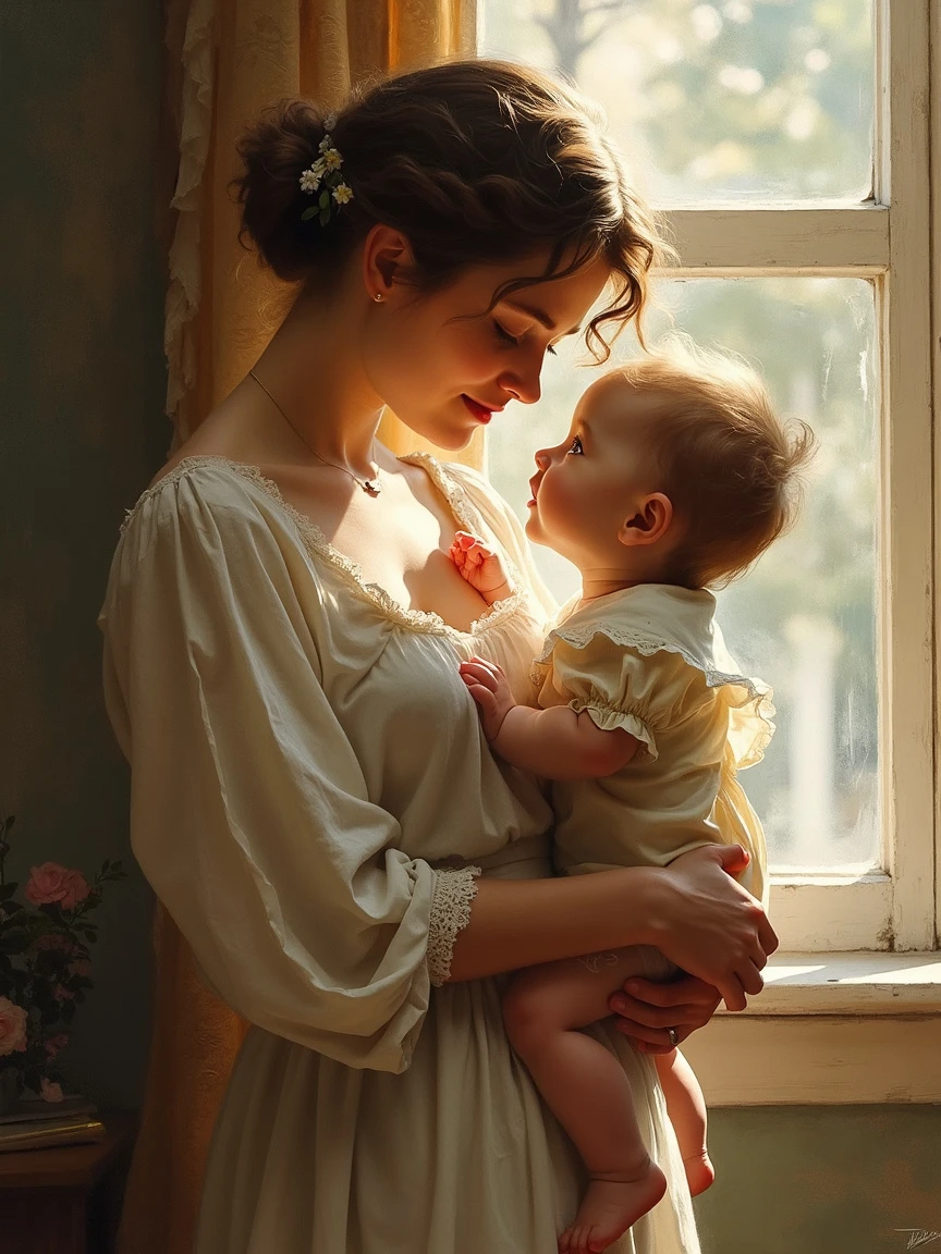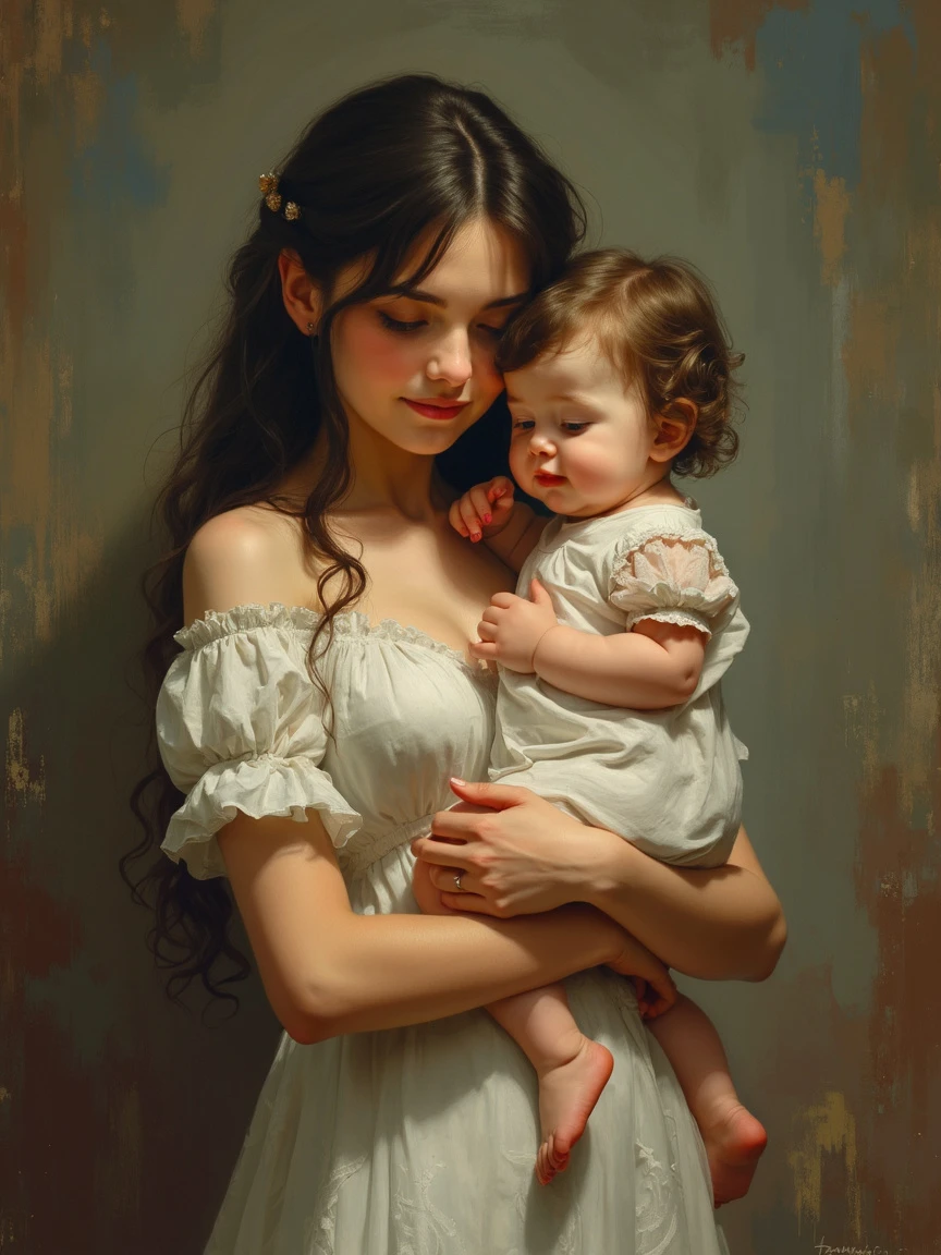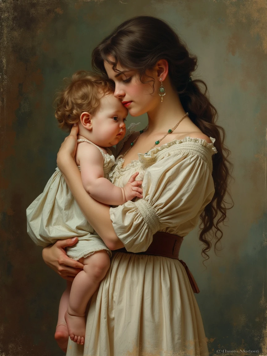A work by Thomas Benjamin Kennington in the style of the artist , mother and child in her arms