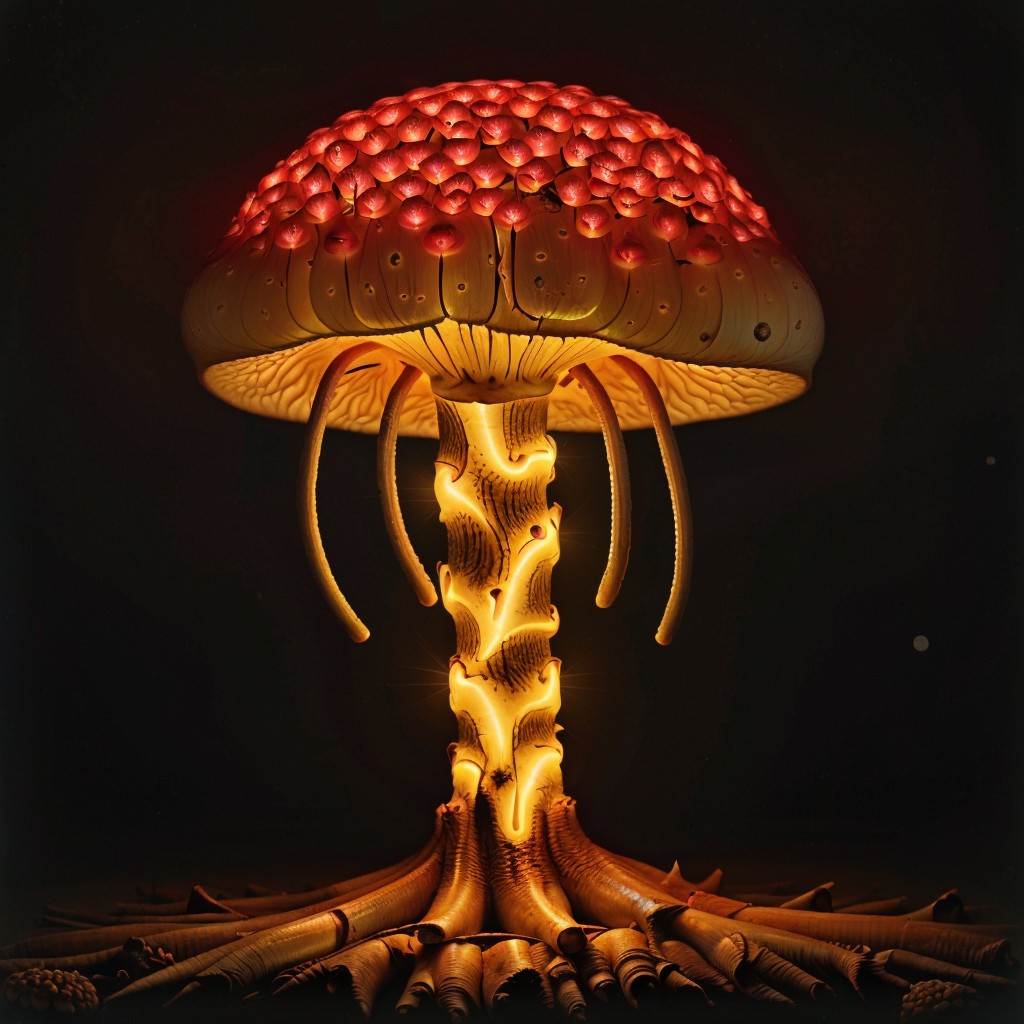 (masterpiece, top quality, best quality, official art, beautiful and aesthetic:1.2), neonpophaeckel, a neon mushroom, black background (no humans:2) <lora:Neon Pop Haeckel:1.0>