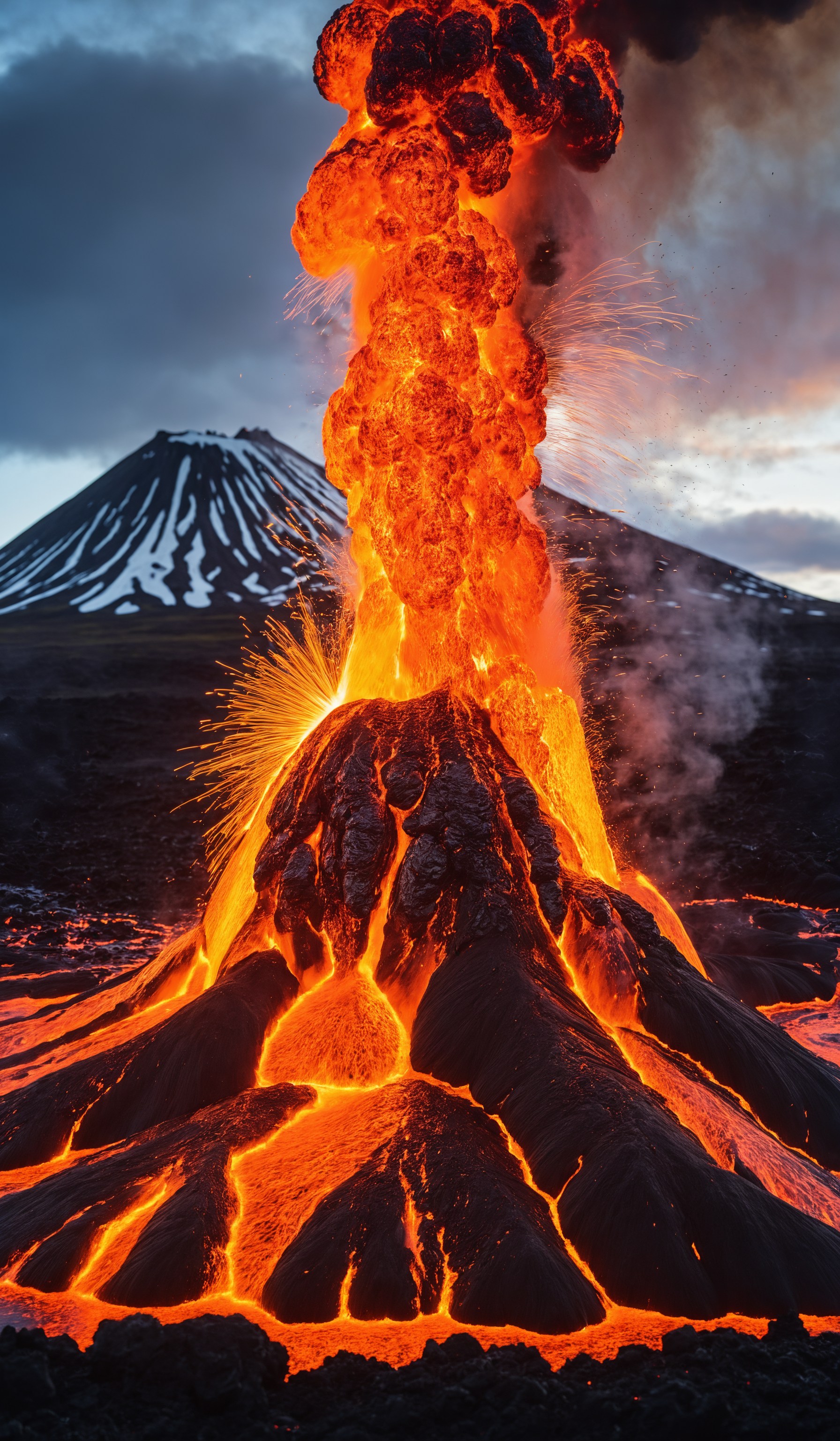 Close-up explosion of fresh lava flowing from volcano eruption in Geldingadalur, Iceland., copy space, design template, breathtaking photograph, dramatic light, award-winning, professional, highly detailed . 35mm photograph, film, bokeh, professional, 4k ,minimalistic, daylight, warm atmosphere, <lora:add-detail-xl:1>, cinematic look, <lora:SDXLHighDetail:0.3>