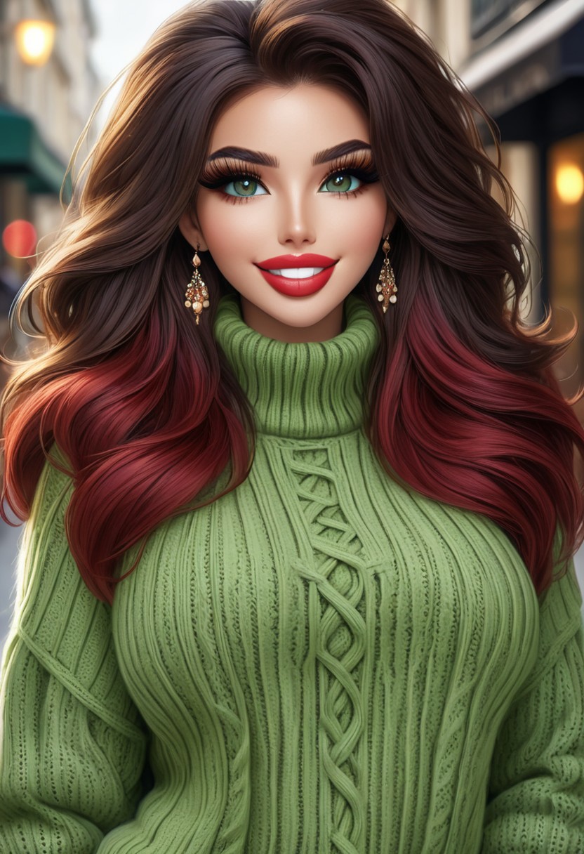(Style-DoF:1.7), <lora:LaDy_Bloom:1.0>, bmbplora, CYBR-XL, <lora:bmbploraxl6-000008:0.65>, <lora:BimbolipsV4-000003:0.8>, <lyco:biglips-v2:1>, ((big lips):1.2), (((full body photograph))), large iridescent electrical bright eyes, ((ultra detailed, highly detailed):1.4), (best quality), (full body), woman, (Caucasian ethnicity beautiful woman), ((fluffy clothes):1.7), ((fluffy sweater):1.7), (beautiful women:2.5), (((porcelain color skin))), (photorealistic:1.8) (bokeh:1.3) (intricate details) (cinematic lighting) (sharp focus) ((Full body photograph):1.8). Long very voluminous brown hair. (Ultra furry:1.8)(fur trimmed) sweater. ((Ribbed sweater knit with a large loop):1.8). bmbplora. Bimbo makeup. Bold (long eyeliner:1.9). (Long fluffy lashes:1.5). (smaragd green color eyes:1.4) and (red glossy and shiny lips:1.9), big lips, bimbolips, (huge lips:1.8), enormous lips, parted lips. Smiling and showing ((super white)) ((perfect arranged teeth):1.5). (Big boobs:1.4). (Long boots) (fur trimmed). Thai and Caucasian beautiful women stay on the middle of Paris street.