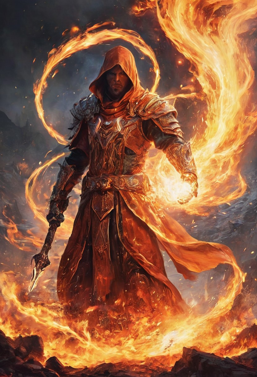 A formidable mage, garbed in flowing, ember-glowing robes, stands at the center of a desolate, scorched battlefield. The mage channels a blazing fireball, its searing flames illuminating the dark, smoke-filled air with intense, flickering light. The scene is charged with a fierce, elemental energy and a sense of impending destruction. Rendered in a Photographic style with a 135mm lens, capturing the fiery explosion’s vivid details and dramatic contrasts. OverallDetailXL <lora:SDXLFaeTastic2400:0.4> <lora:DetailMaximizer:0.7> detailmaximizer <lora:MJ52:0.3>