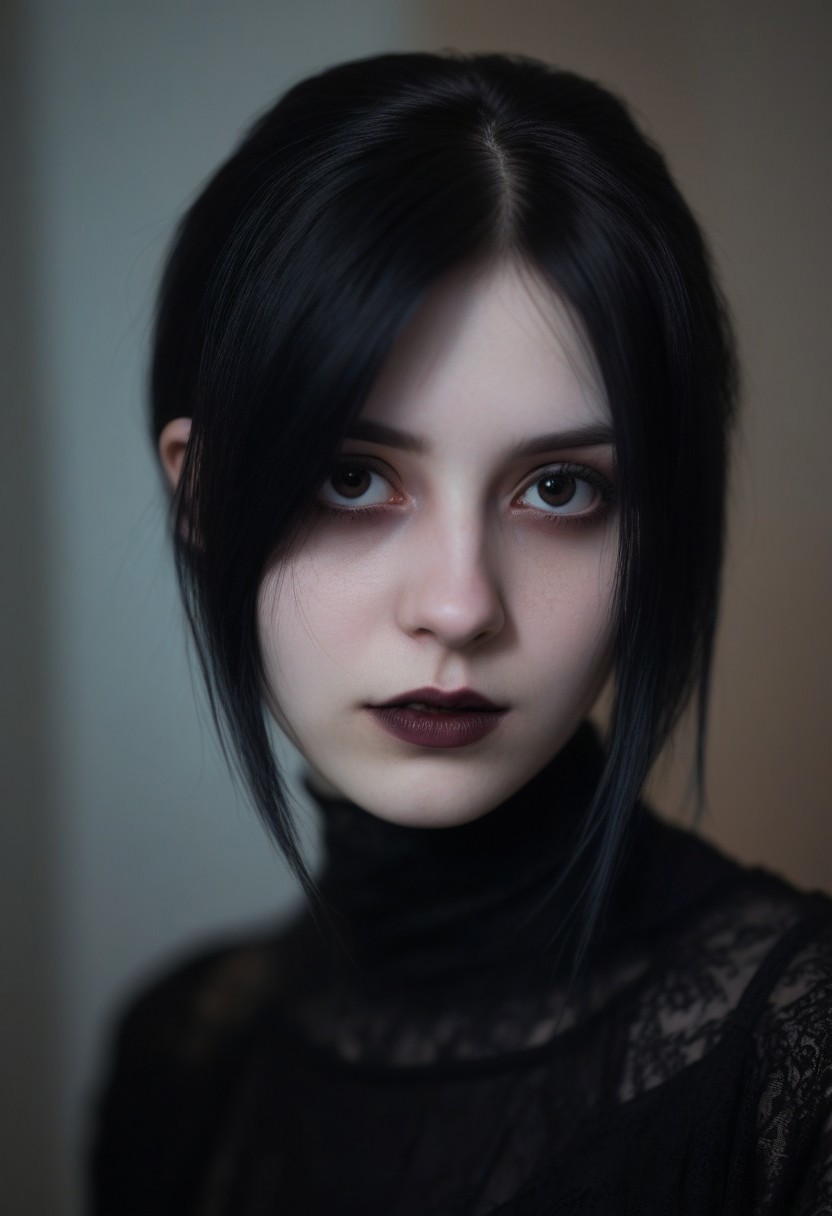 (((top-priority))), real-life, goth-girlfriend, split ambient twilight light, shallow focus, realistic shadows, ideal, vellus hairs, best image, best quality, depth of field, perfect composition, suggestive:1.2,