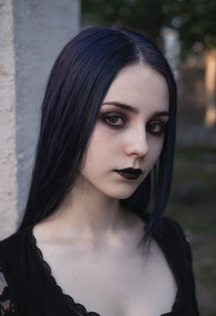 (((top-priority))), real-life, goth-girlfriend, split ambient twilight light, shallow focus, realistic shadows, ideal, vellus hairs, best image, best quality, depth of field, perfect composition, suggestive