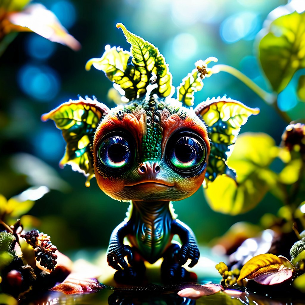 old masters painting style, intricate details, award-winning macro photo, (short depth of field:1.2), the (diminutive:1.4) "terrible fifferchad" is a (colorful:1.2) peculiar and strange beast (with reflective eyes:1.2) that dwells in the verdant canopies and dreadery snickerwhirl of the exotic alien world "blunderton iv", where they harvest rimflongled spores and (floating particles:1.3) for sustenance, (dappled light:1.2), chiaroscuro, blue-green and iridescent green, <lora:lyco-style-envydramaticlightingxl01_digital_art-xl:0.36> <lora:midjourney_mimic-xl-by_andrexsel:0.4> <lora:more_artful-xl:0.4> <lora:extremely_detailed-detail_slider-v2-xl-by_ntc:1.0> <lora:envybetterhiresfixxl01-xl:0.0:hr=1.0>