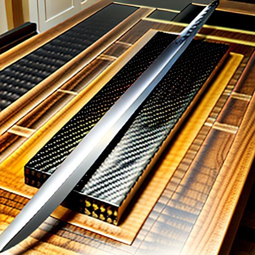 carbon fiber sword collection, conducting wooden electricity, 8k extreme detail, on a carbon fiber table, realistic, perfect, no mistakes, amazing, epic, vibrant colors,