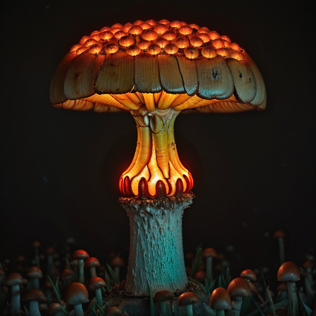 (masterpiece, top quality, best quality, official art, beautiful and aesthetic:1.2), neonpophaeckel, a neon mushroom, black background (no humans:2) <lora:Neon Pop Haeckel:1.0>