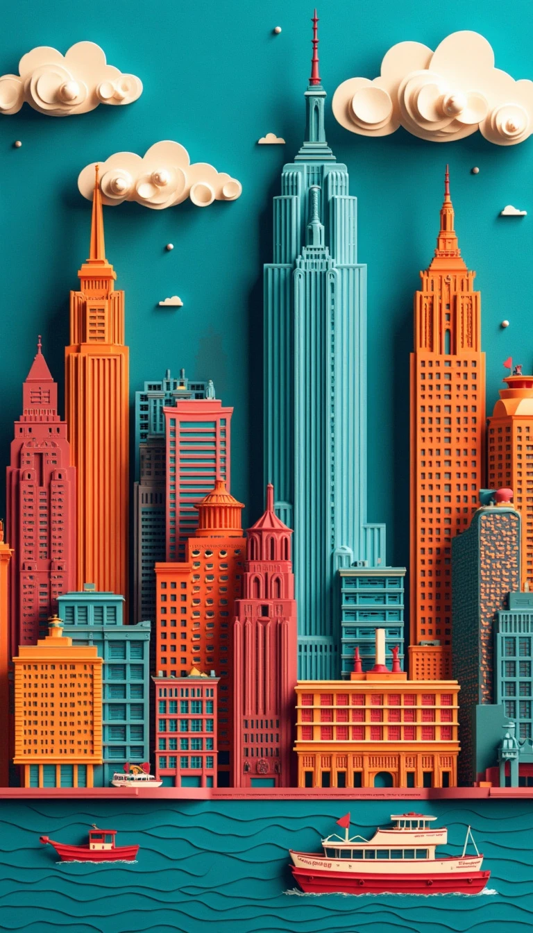 A paper art work of New York City, USA, in the style of vibrant illustrations