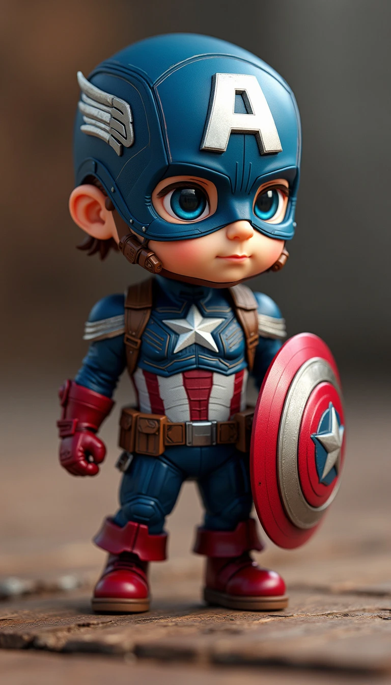 Decoupage, 3D [cute Captain America], Action Figure, hyperrealistic, 8K