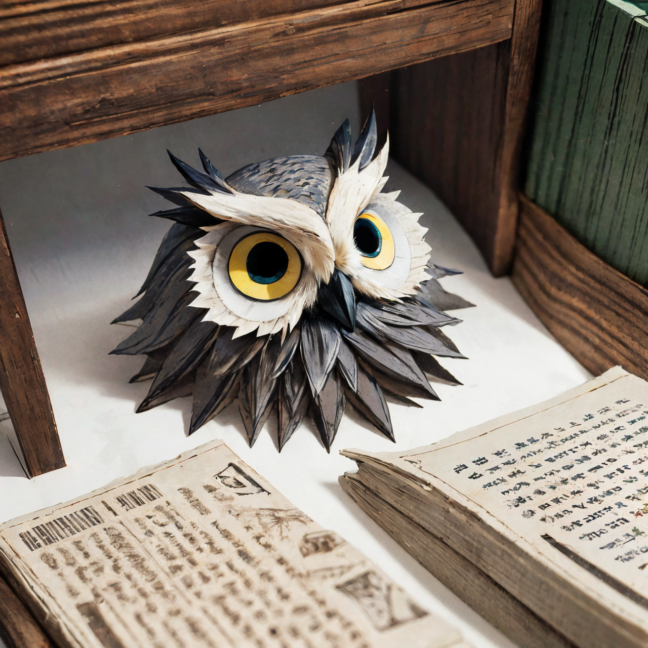 RAW photo, 8k uhd, Analog style, (Masterpiece, Best Quality, Highres:1.3), dramatic, cinematic, (paper-cut craft:1.3), BREAK, intricate (paper-cut craft:1.4) of mysterious intricate ornamented (owl:1.4), (beige square photo-frame:0.7), circle mask, (forest, mountain:1.3), (winter, moon:0.5), (green, blue, brown, white:1.1), (black, gold:0.8), (paper-cut craft, colorful, layers, flat, fabulous, children's book:1.2), cardboard, bronze, (hyperdetailed, absurdres:1.1), BREAK, <lora:more_details:0.1>