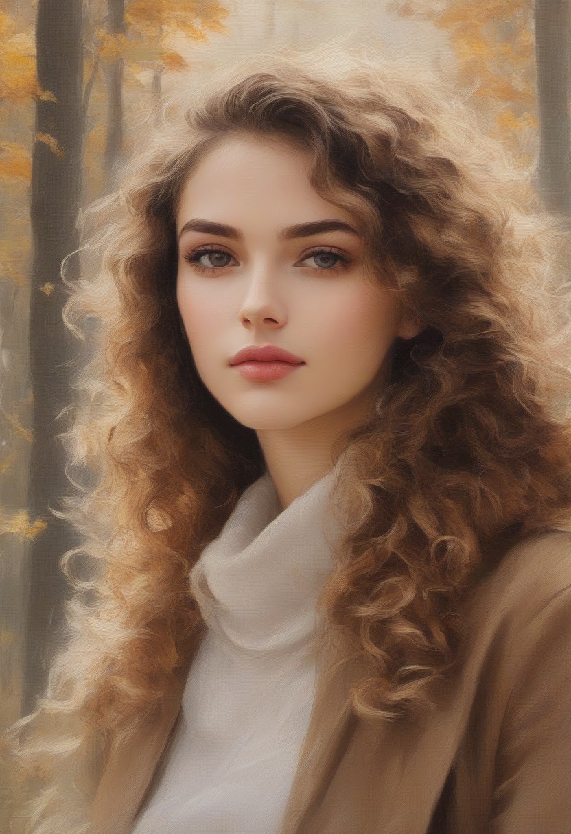 Portrait of woman with very volumous, elegant curly hair in nature, fluffy, novuschroma25 style <lora:novuschroma25 style_light:1>, <lora:sdxl_lightning_8step_lora:1>