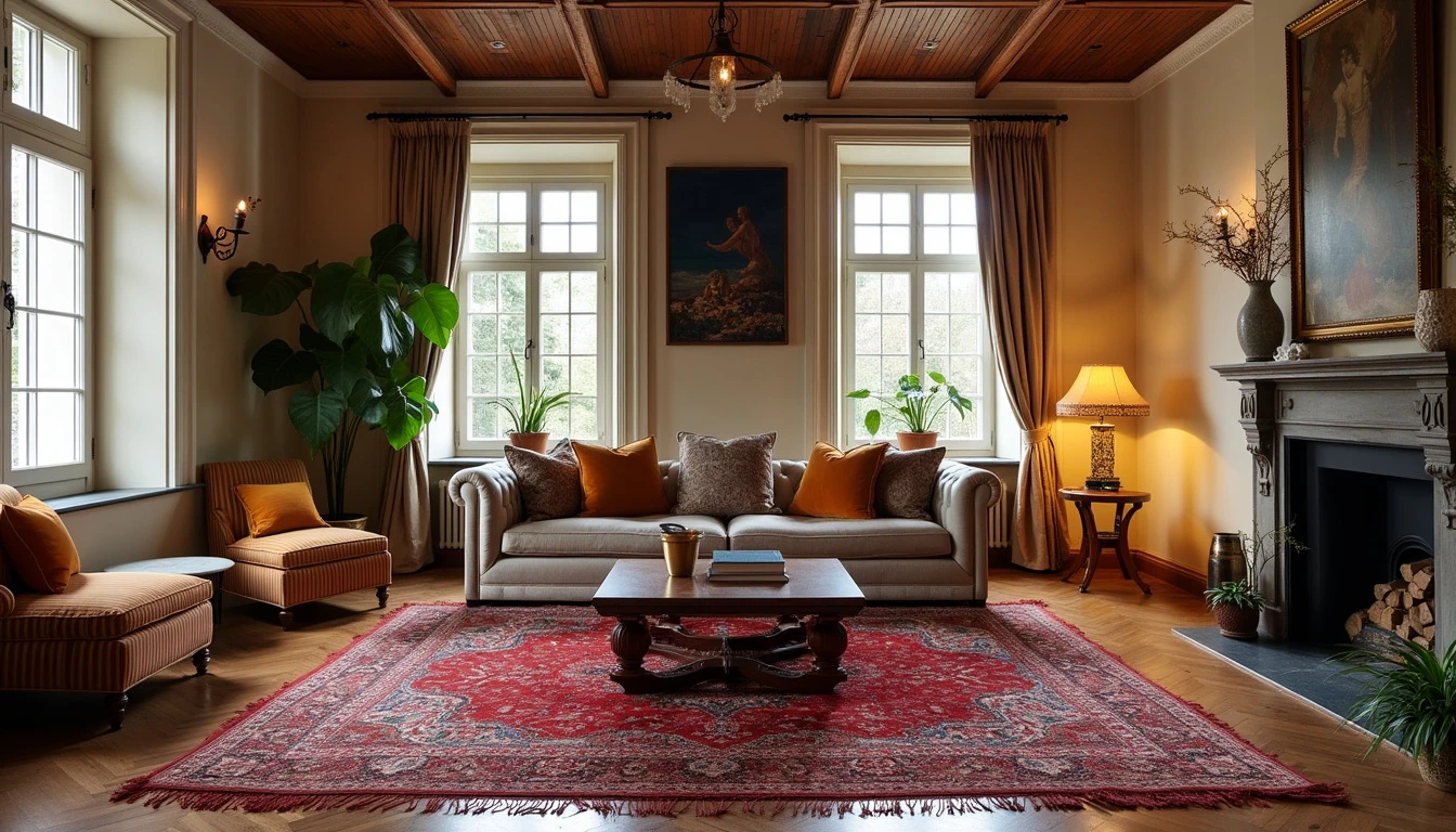 front view, living persian room + loft, persian pettern , classic