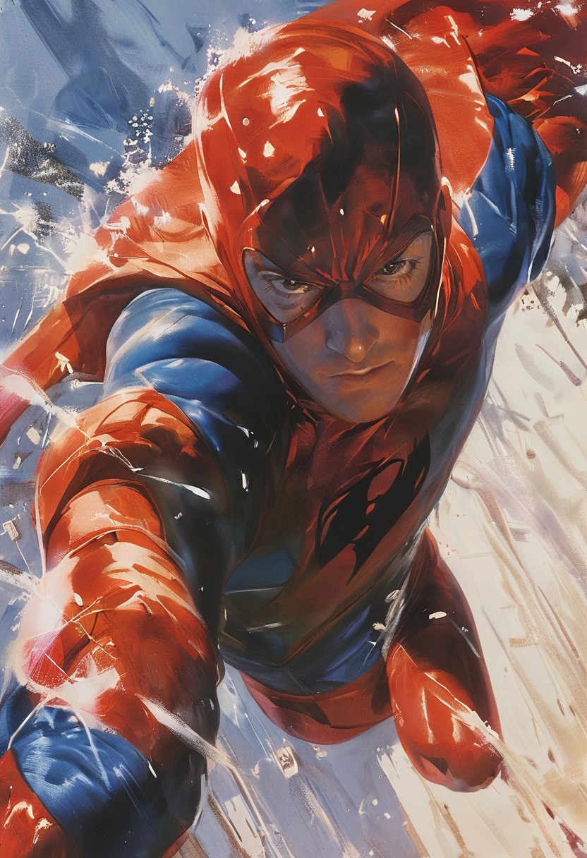 Close-up. Spider-man in the 1940's, Style of Alex Ross