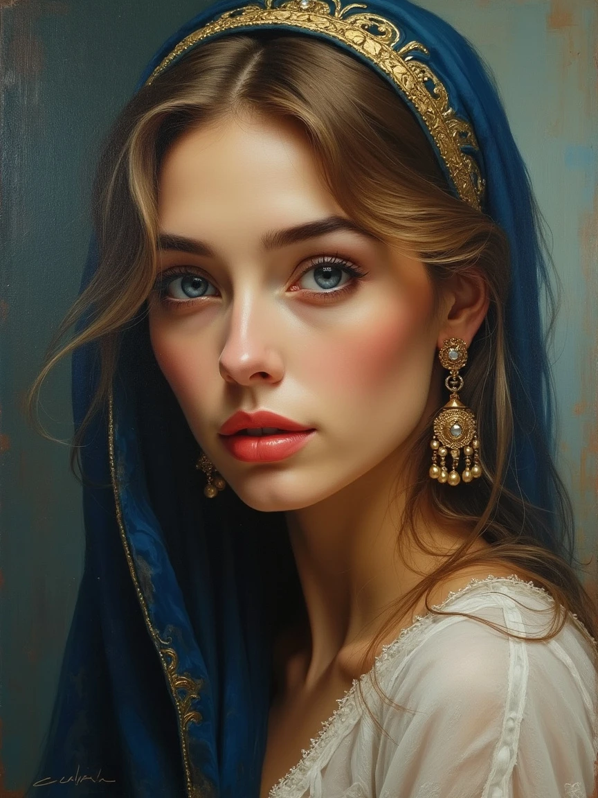 Portrait of a woman by Magali Villeneuve, a beauty woman in middle east , oil painting style