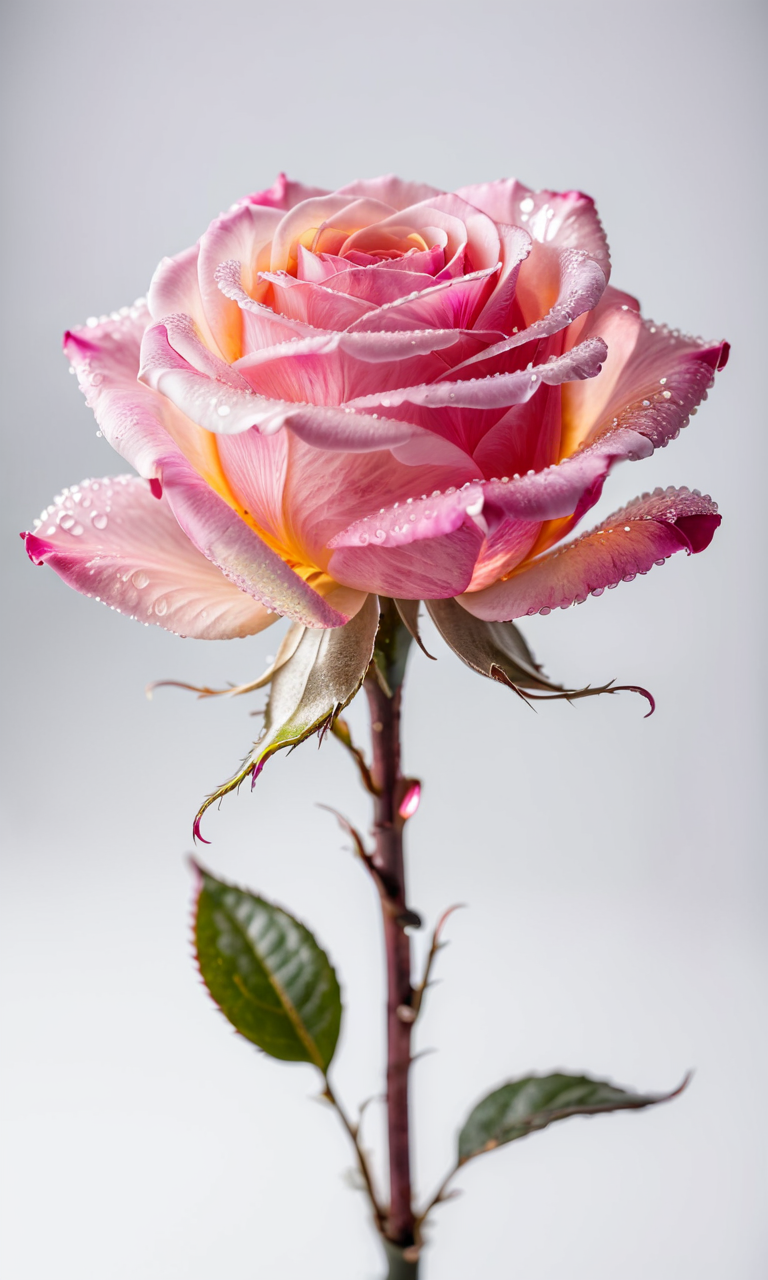 pink crystal rose flower, strong focus on subject, soft lighting, indirect lighting, strong bokeh, solid white background, multicolor, realistic, <lora:add-detail-xl (1):1> <lora:WowifierXL-V2:1>