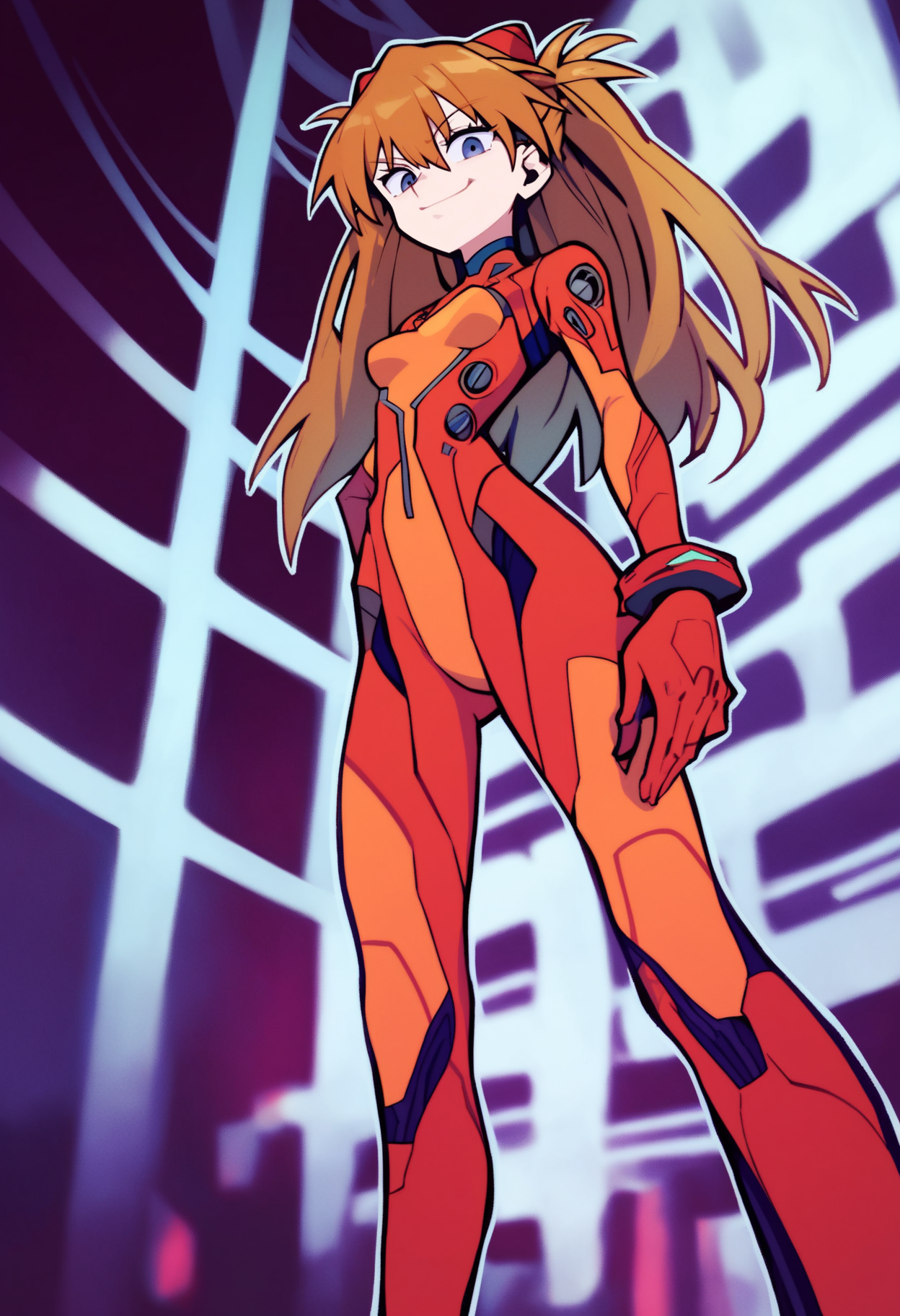 score_9, score_8_up, score_7_up, black outline, BREAK, 1girl, asuka langley, red plugsuit, standing, smug, looking at viewer, futuristic background, neon light , buildings, night <lora:TwewyXL_byKonan:1>