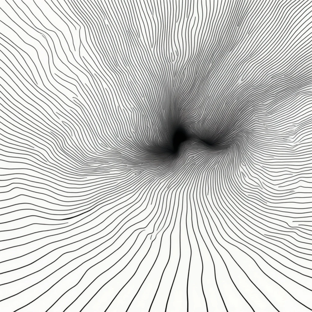 A minimalist, one-line drawing of the surrealistic abstract impression of hyperspace made with multiple flowing lines
