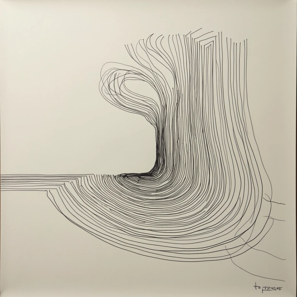 A minimalist, one-line drawing of the surrealistic abstract impression of refuge made with multiple flowing lines