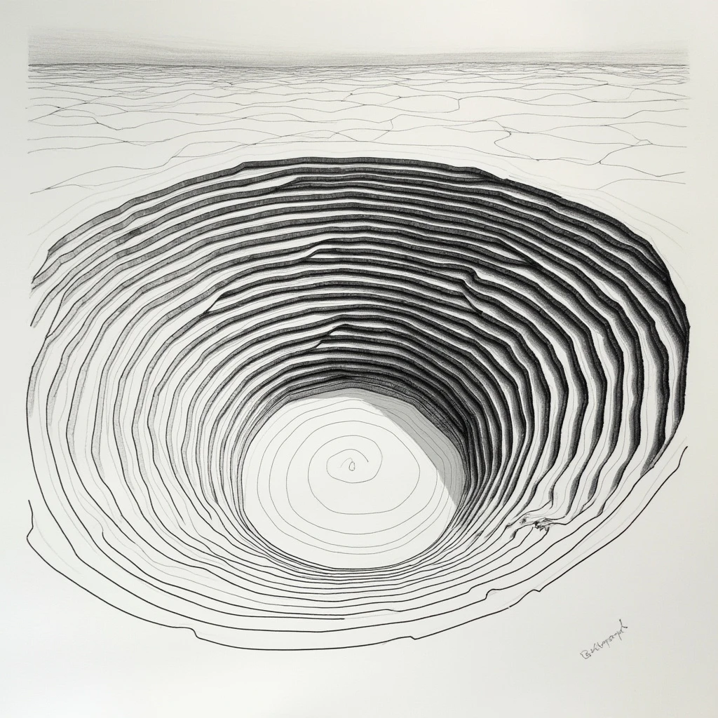 A minimalist, one-line drawing of the surrealistic abstract impression of an amphitheater made with multiple flowing lines