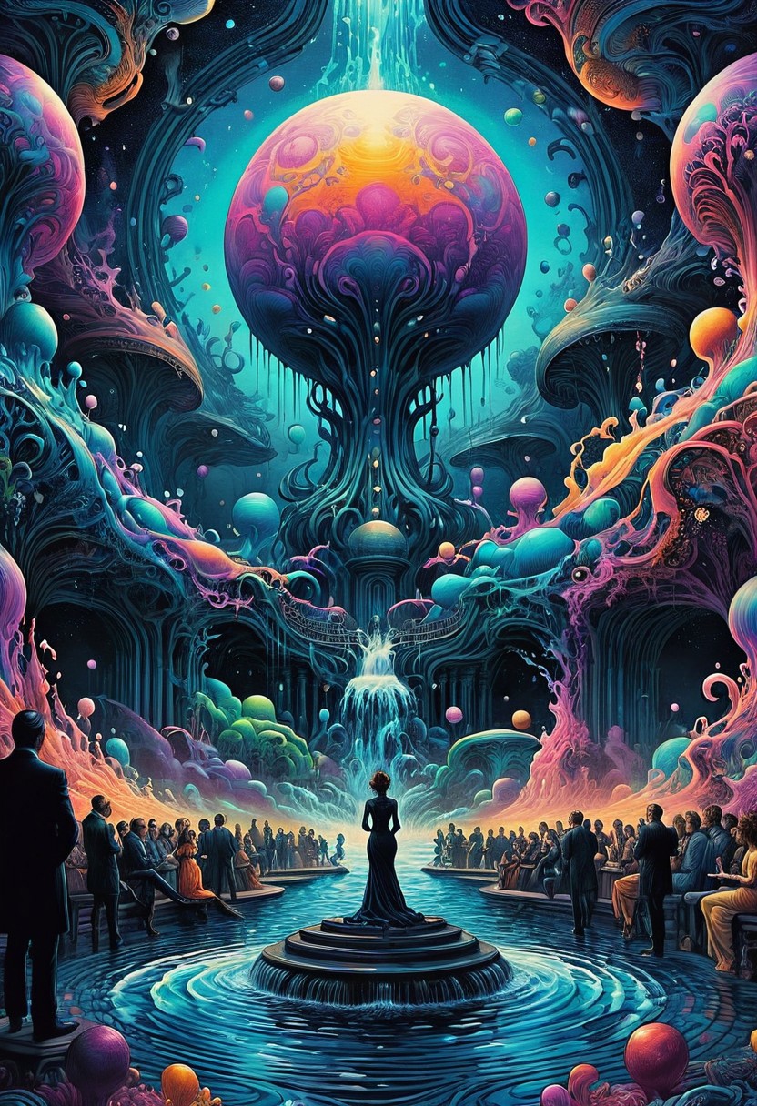 splash art, digital painting,polkadot 60's pastels color, in front of a crowd, art Nouveau, baroque, trending on a planet intricately detailed, large bosom, standing on a alien, most of the picture shows water, detailed, abstract, trippy, 60s style, op art, dark blues , <lora:InkArtXL_1.2:0.4> <lora:FaeTastic:0.35> . incredibly lifelike, high contrast, well defined .