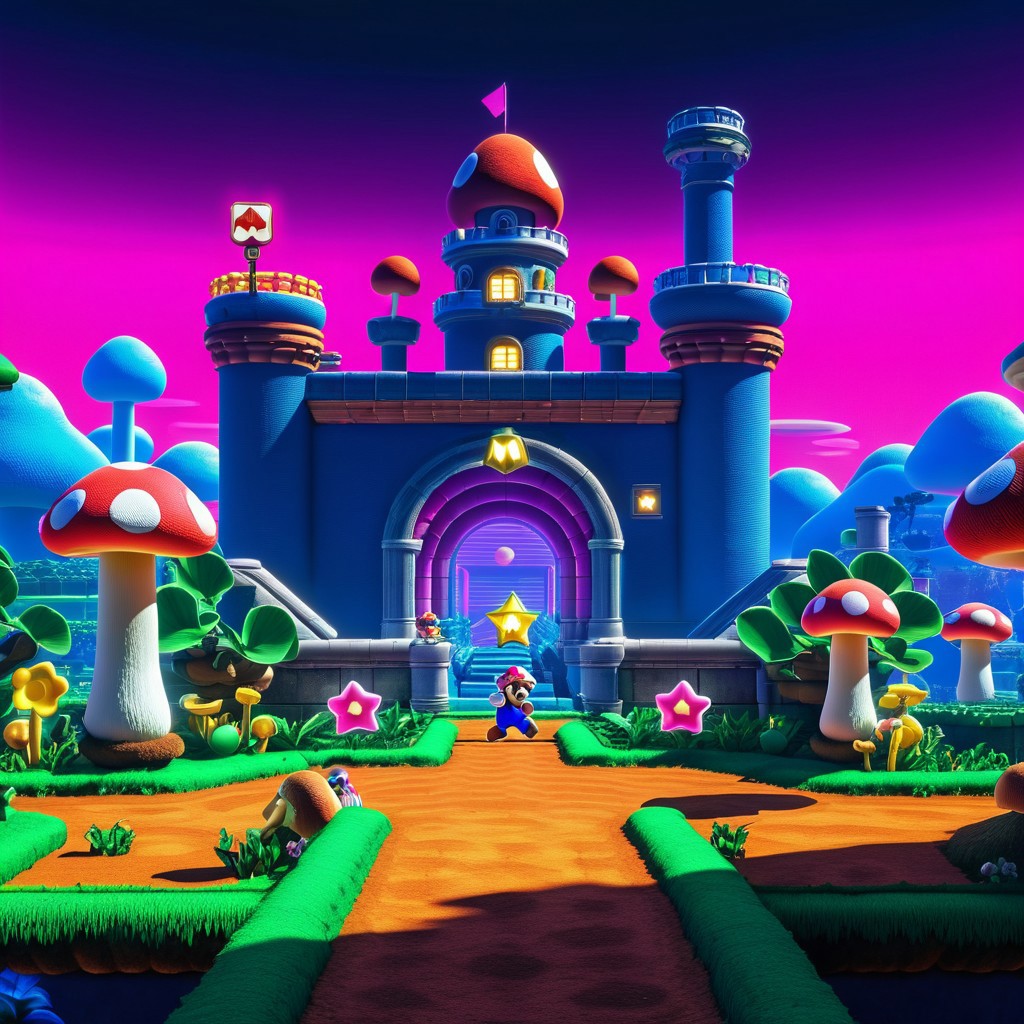 The Super Mario 3D World Of The Mushroom Kingdom, synthwave neon retro