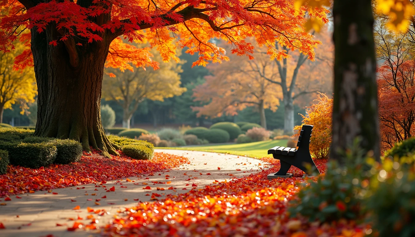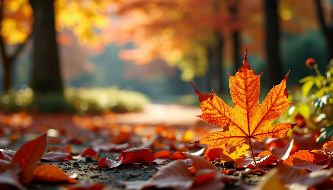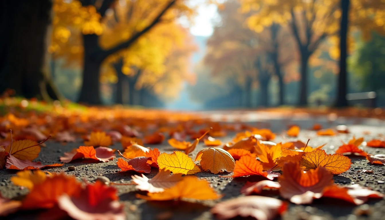 Beautiful yellow red and orange leaves in an autumn park on a br